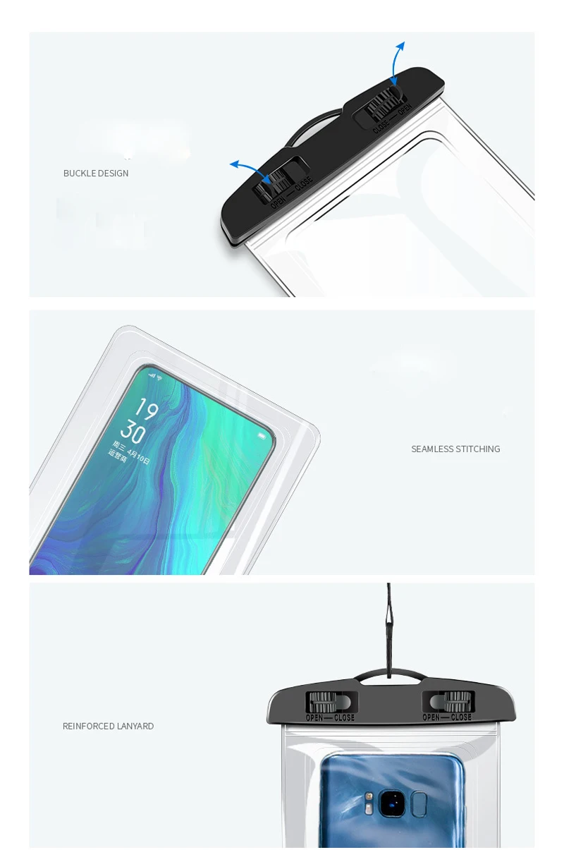 Размер: подходит для мобильных телефонов меньше, чем 6,5 Дюймов Особенности: 1. Умный сенсорный экран, можно использовать ваш мобильный телефон во время плавания. 2. Водонепроницаемый чехол для мобильного телефона 3. Высокая пропускаемость, может делать фотографии под водой