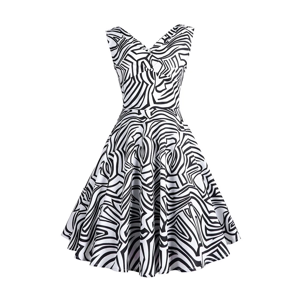 Women's Vintage Polka Dress Printing Sping Retro Rockabilly Cocktail Dress