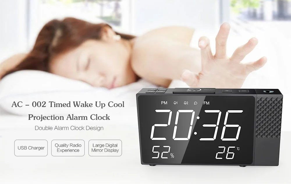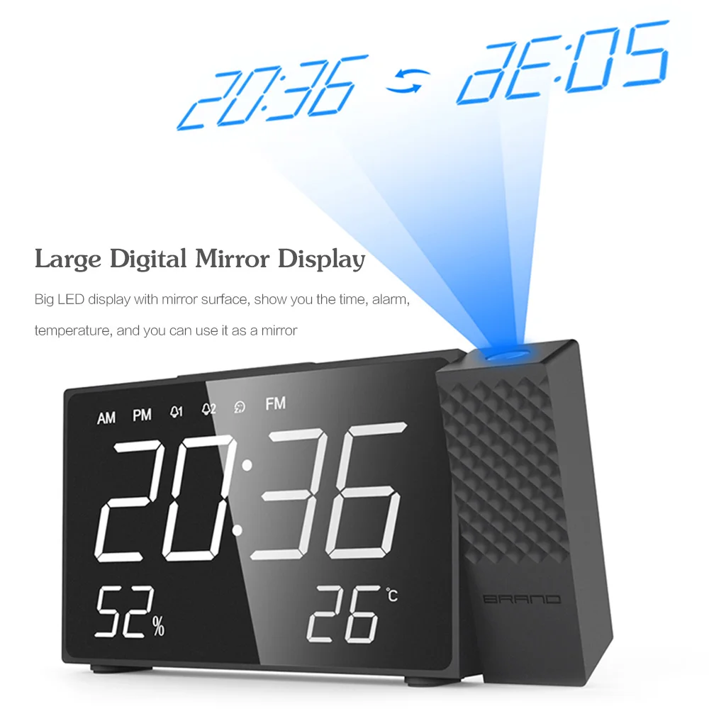 Цифровой проектор часы Bluetooth радио будильник динамик температура 2 USB порты светодиодный дисплей украшение дома Повтор стол