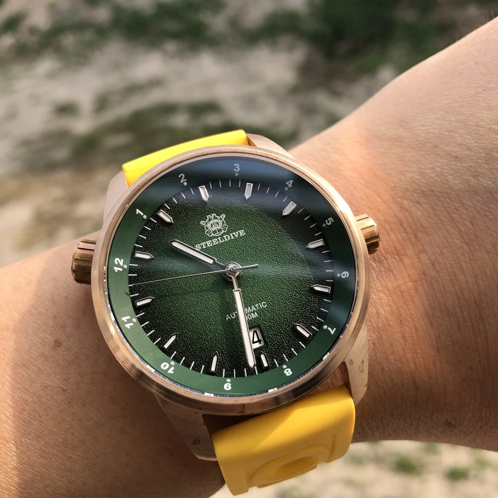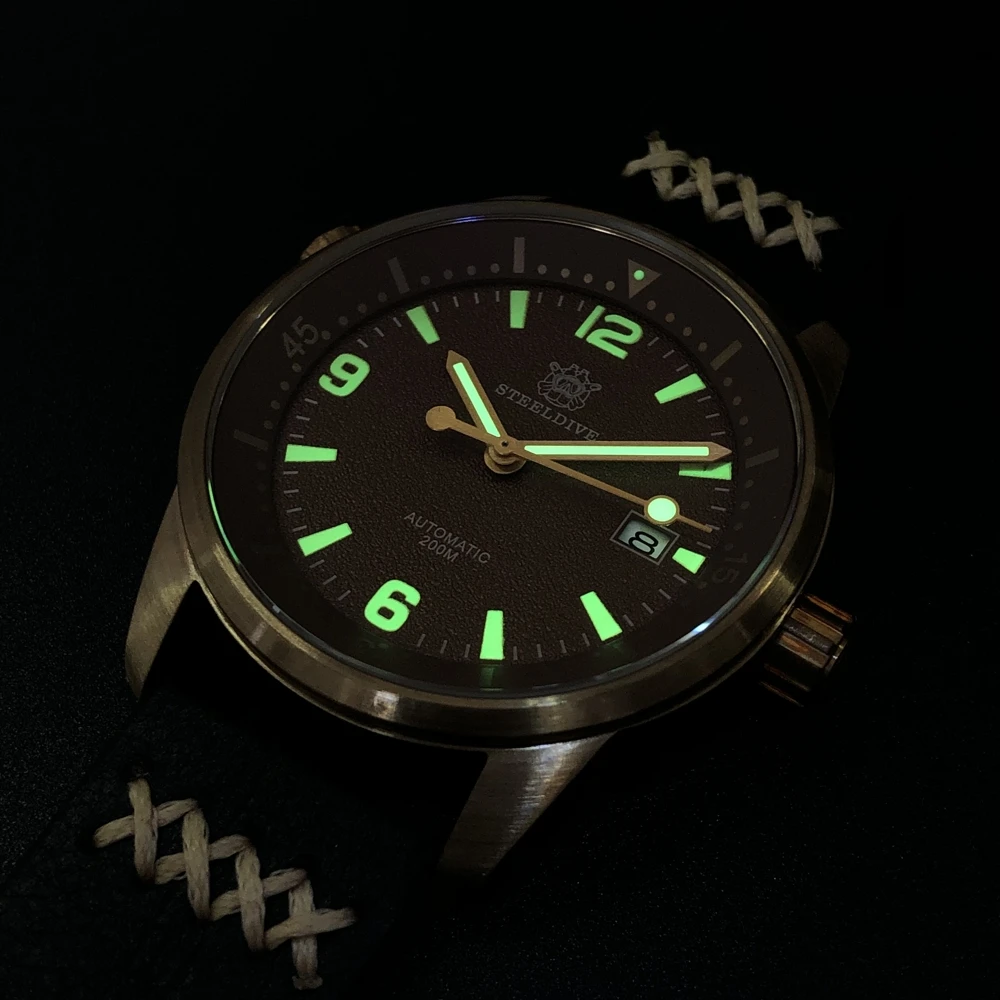 STEELDIVE 1949S-G CUSN8 бронзовые погружные механические часы 200 м сапфировое стекло C3 светящиеся автоматические механические бронзовые часы для мужчин