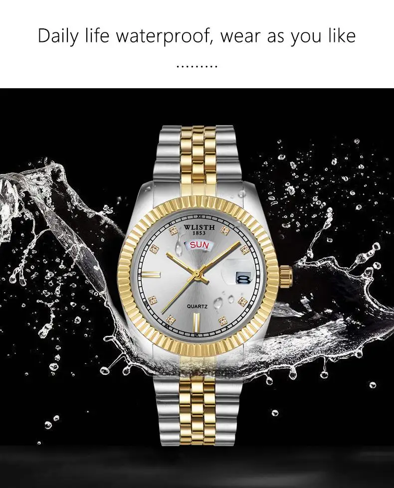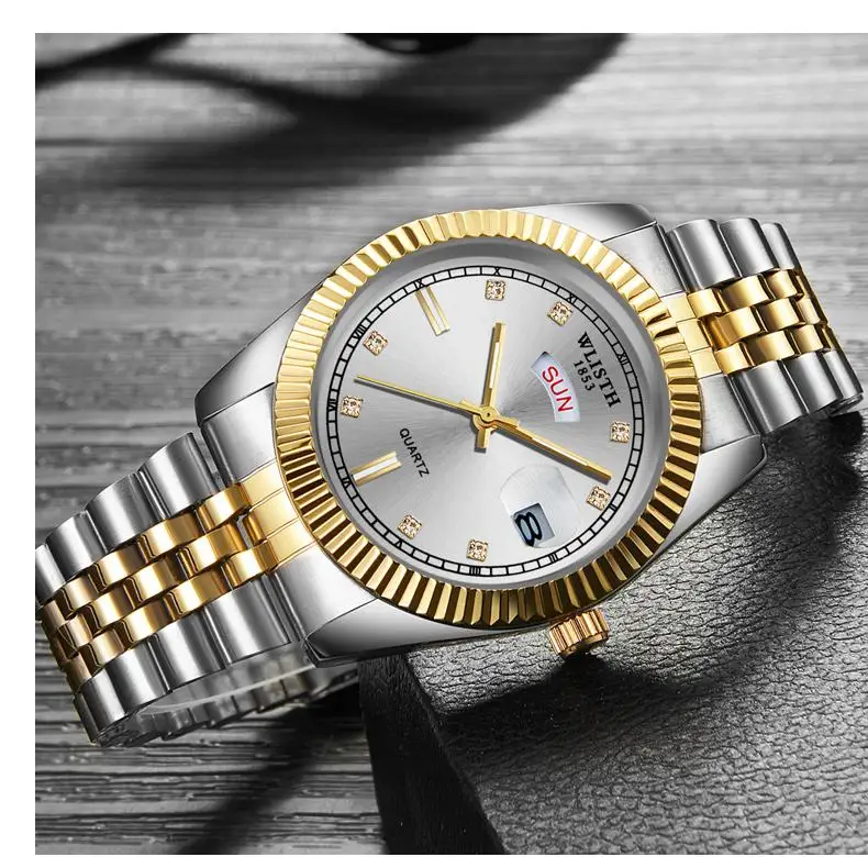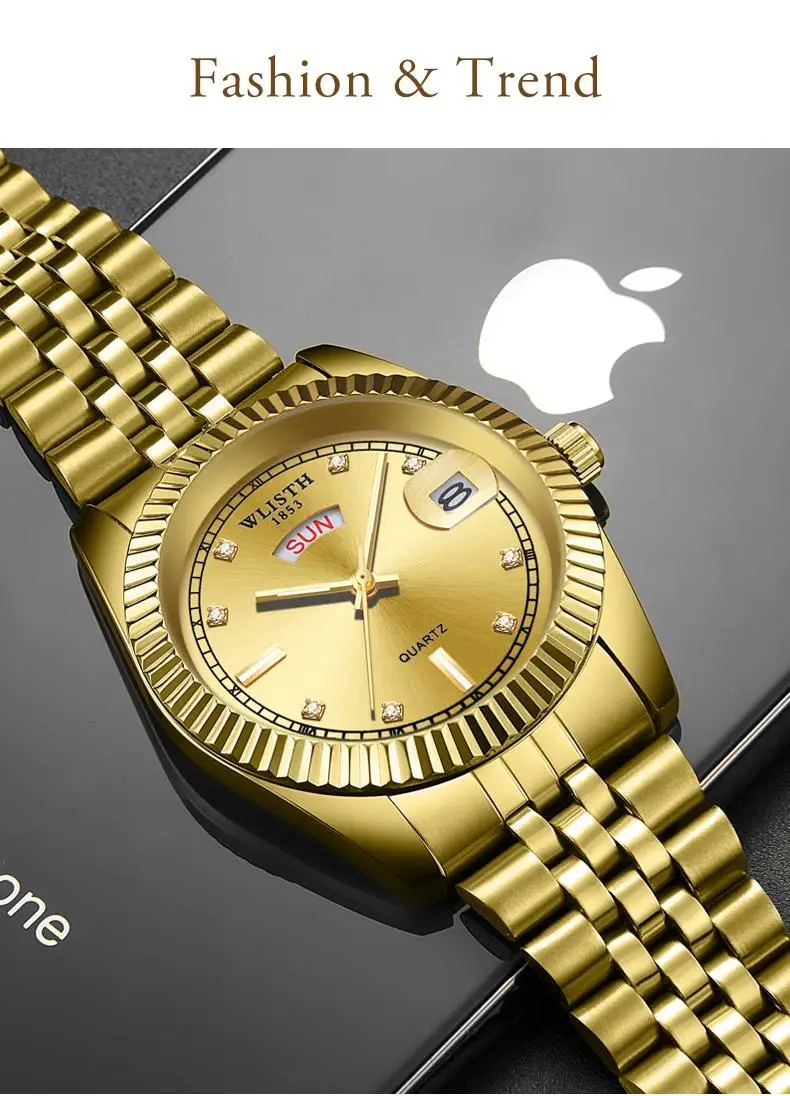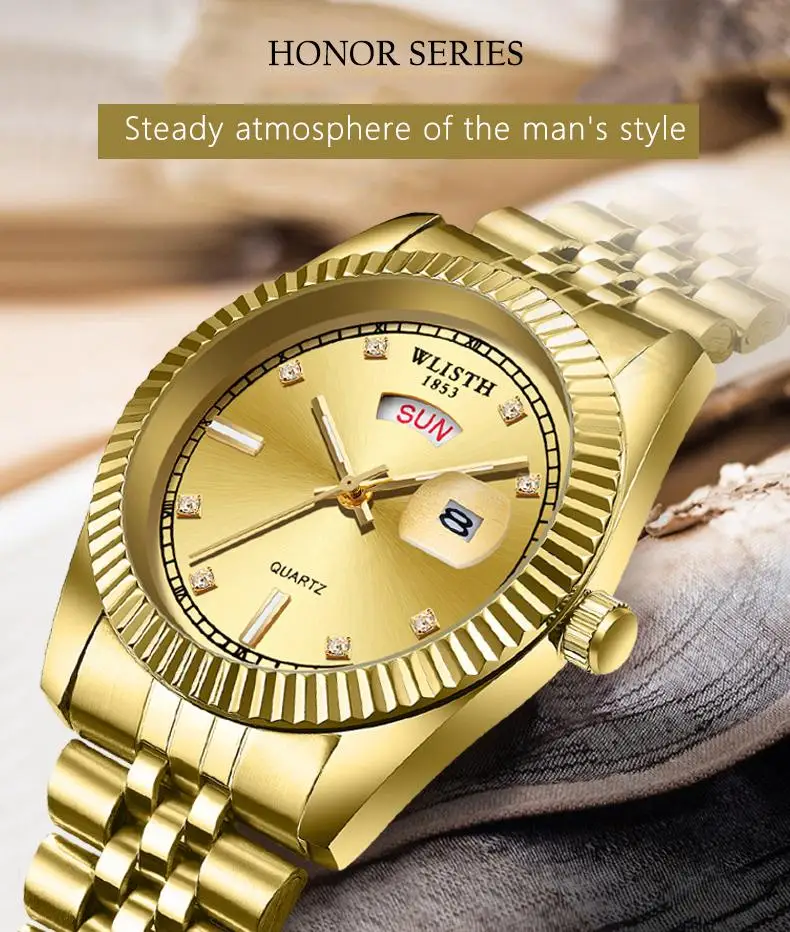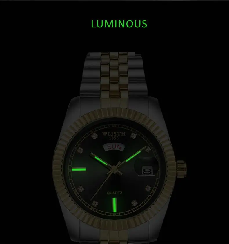 Wlith Роскошные мужские часы светящиеся Кварцевые Золотые колокольчики