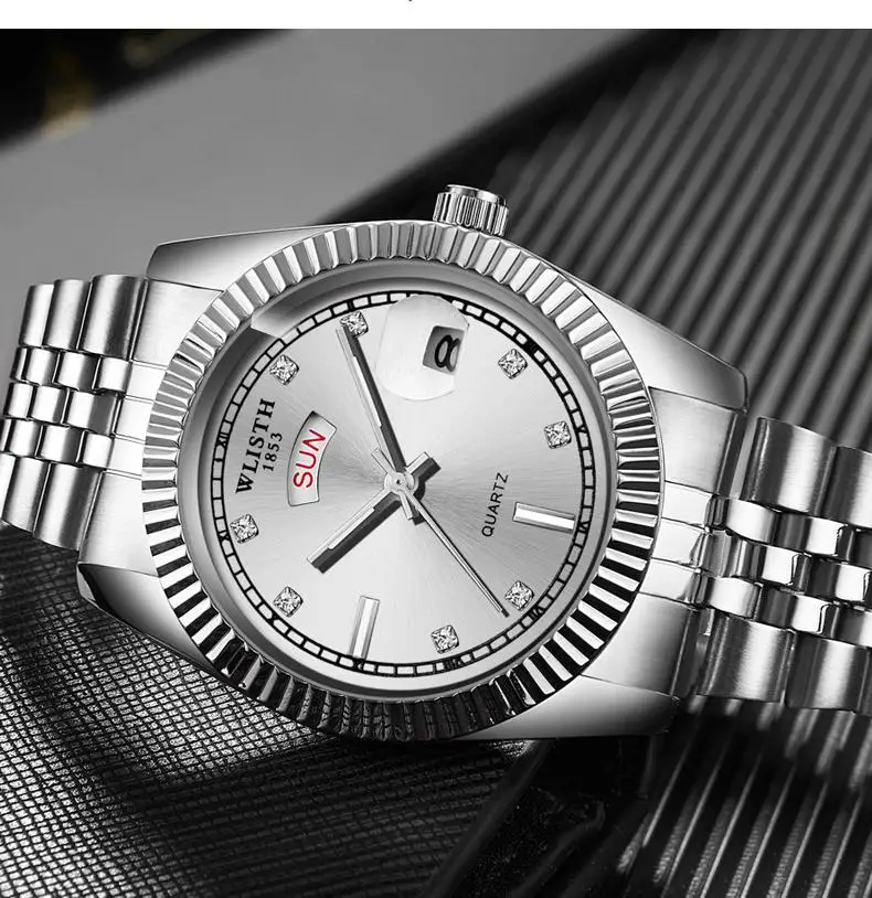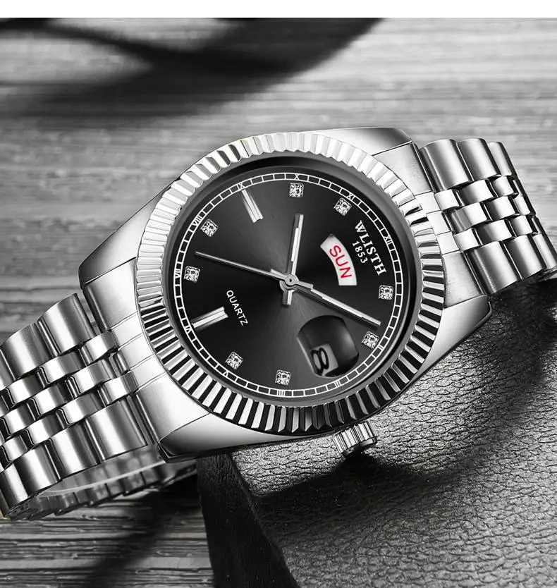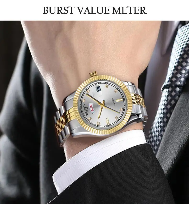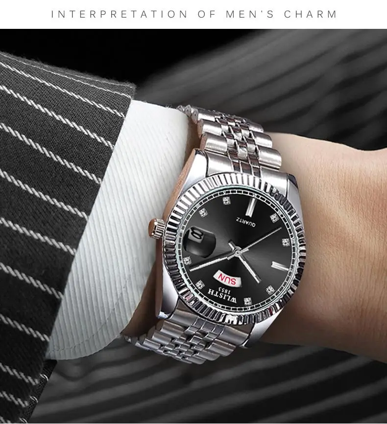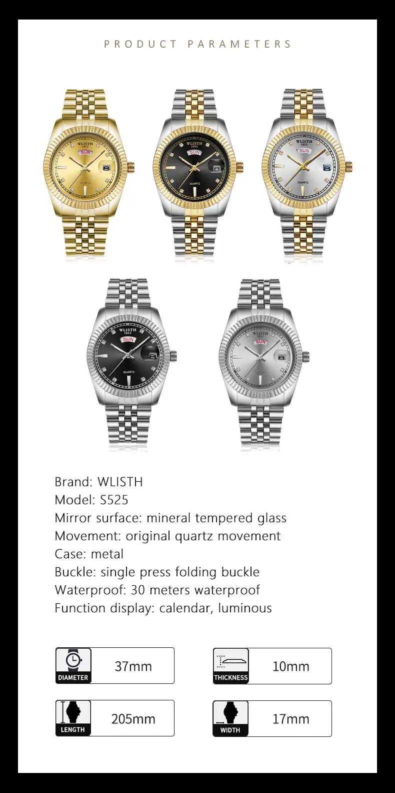 Модель S525 Роскошные мужские часы, оснащенные оригинальным кварцевым механизмом, одинарная Складная Пряжка, диаметр циферблата 37 мм, толщина циферблата 10 мм, Длина ремешка 205 мм, ширина ремешка 17 мм, износостойкое Зеркало высокой твердости, водонепроницаемое на каждый день 30 метров, светящийся дисплей, легко читается в поздней ночной среде