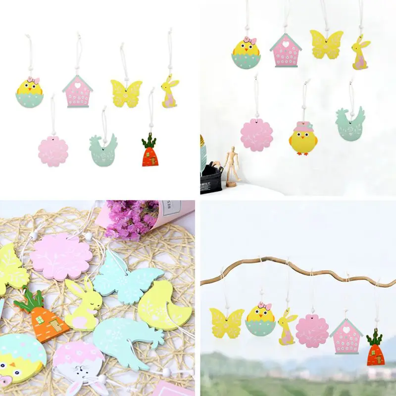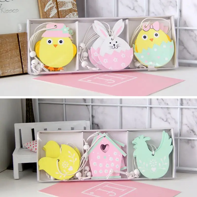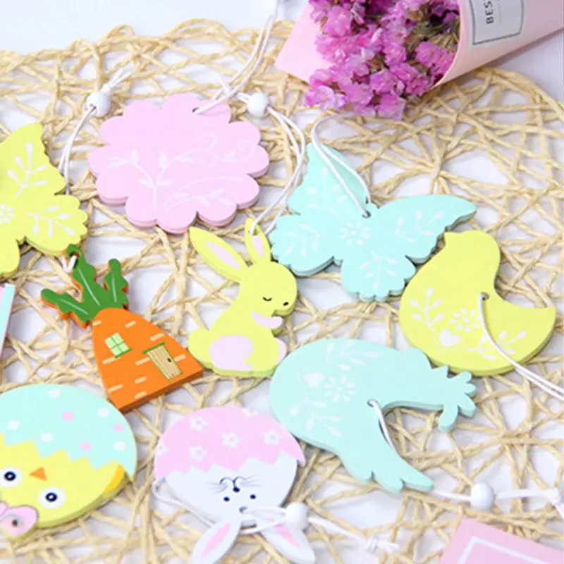 9 шт пасхальные деревянные украшения кулон Пасхальный кролик мультфильм DIY деревянные поделки счастливые пасхальные вечерние украшения для дома украшения для детских игрушек