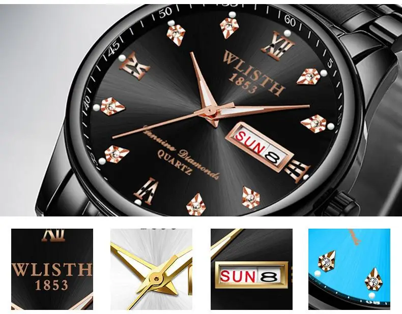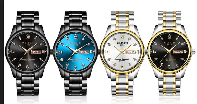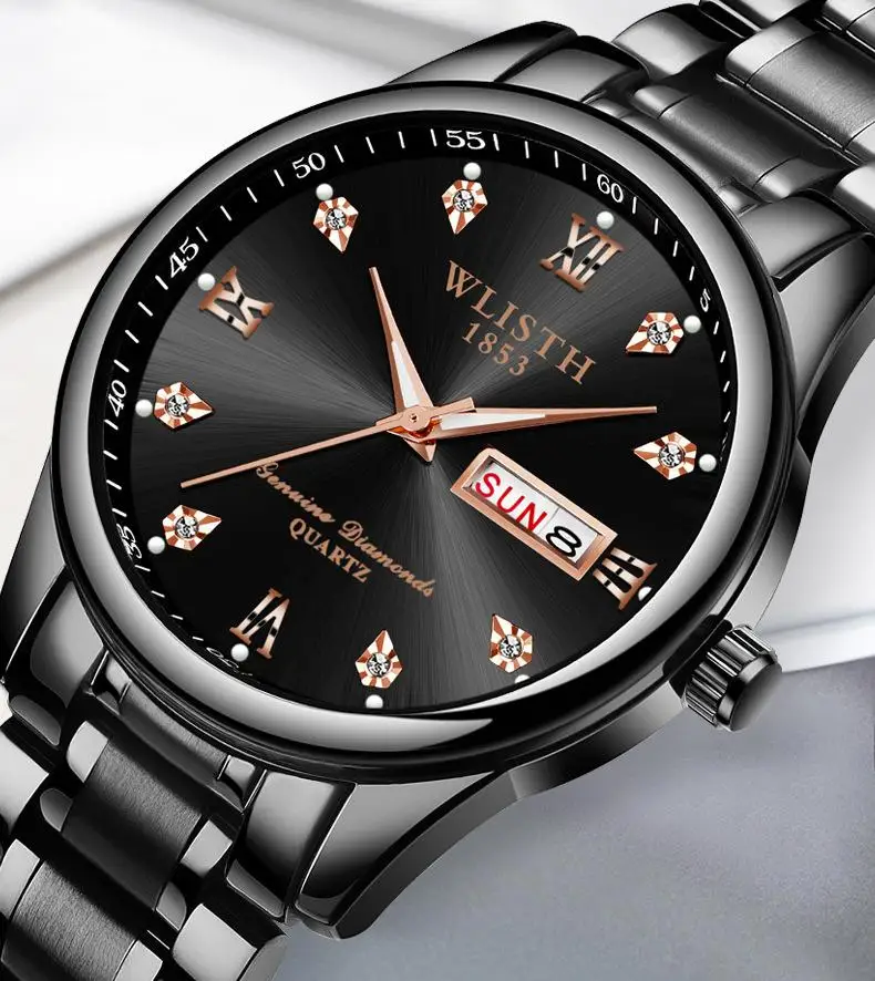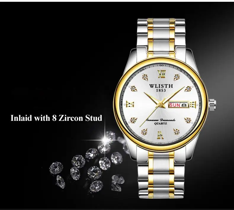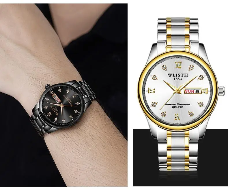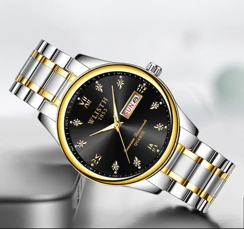 Мужские часы wlith Erkek Kol Saati с двойным календарем и датой на день, кварцевые часы, роскошные часы с бриллиантовым циферблатом, светящаяся указка, двухцветные стальные часы