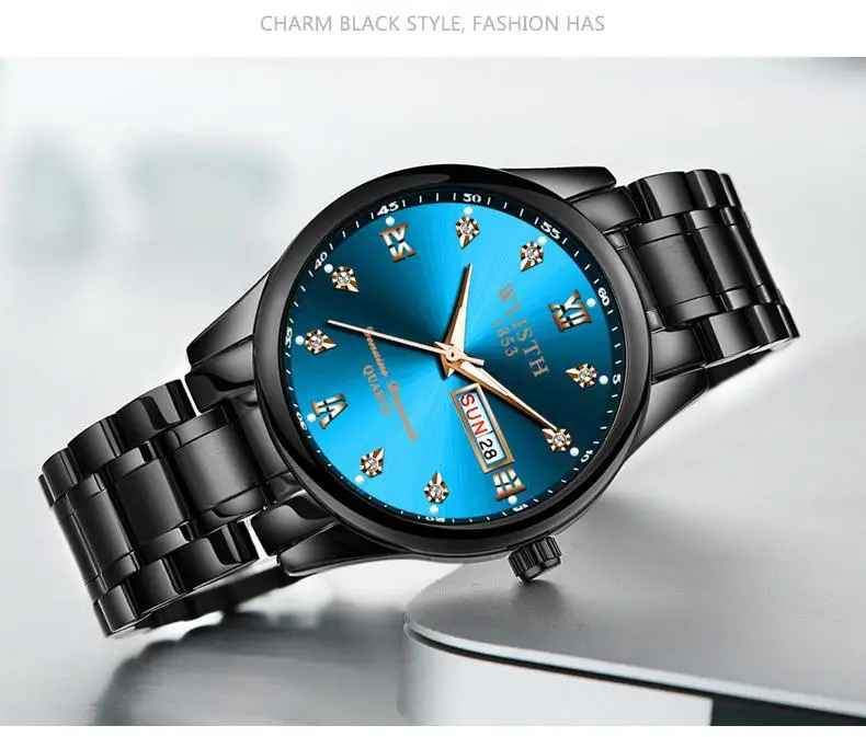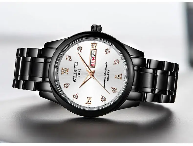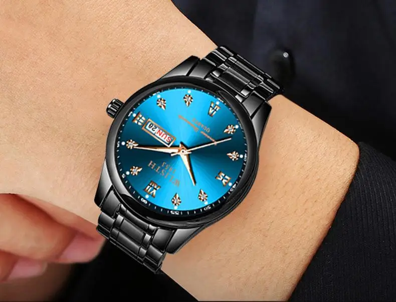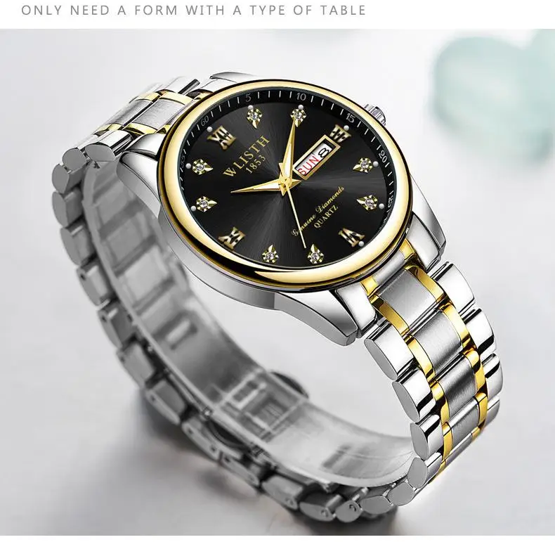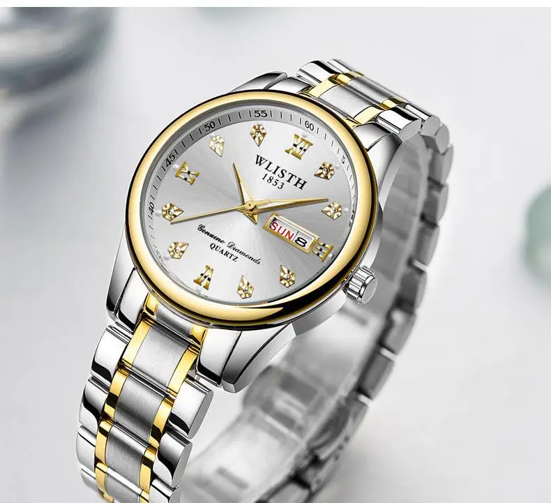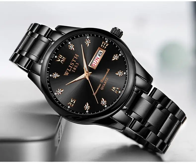 Мужские часы wlith Erkek Kol Saati с двойным календарем и датой на день, кварцевые часы, роскошные часы с бриллиантовым циферблатом, светящаяся указка, двухцветные стальные часы