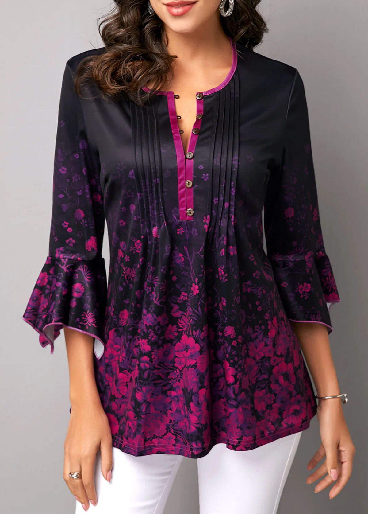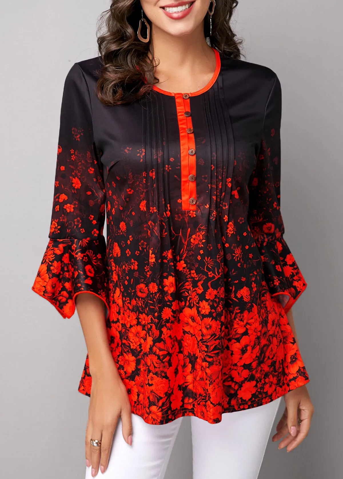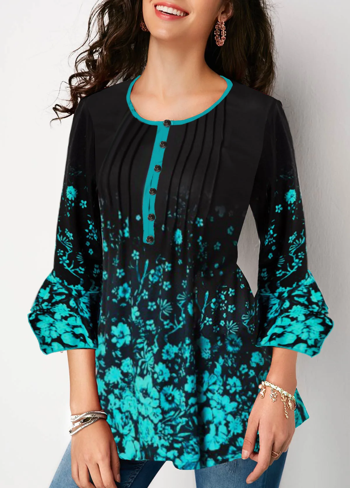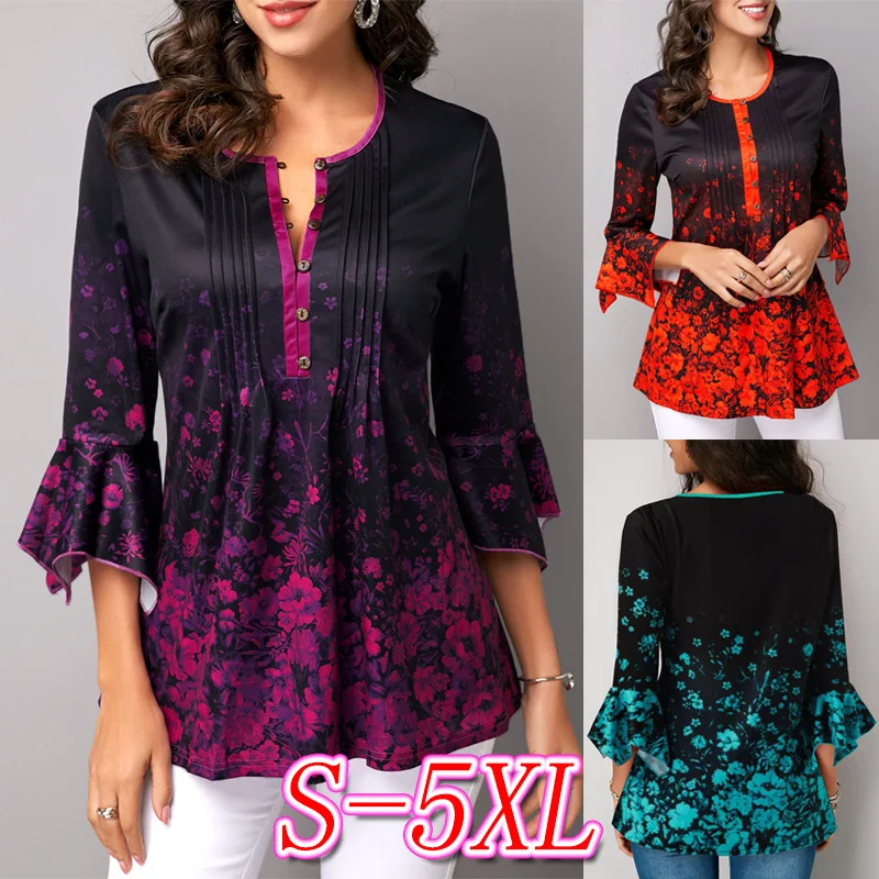 Летняя рубашка блузка женская однобортная Бохо рубашка с цветочным принтом v-образный вырез с расклешенными рукавами женские топы, повседневные блузки размера плюс 5XL
