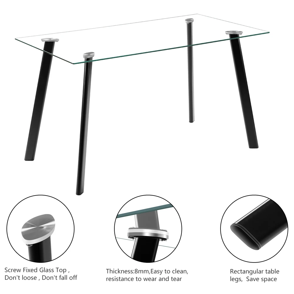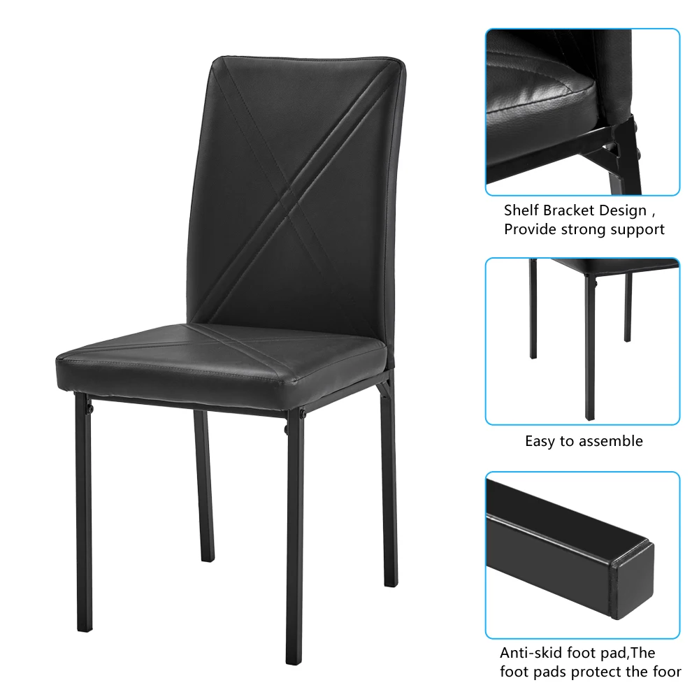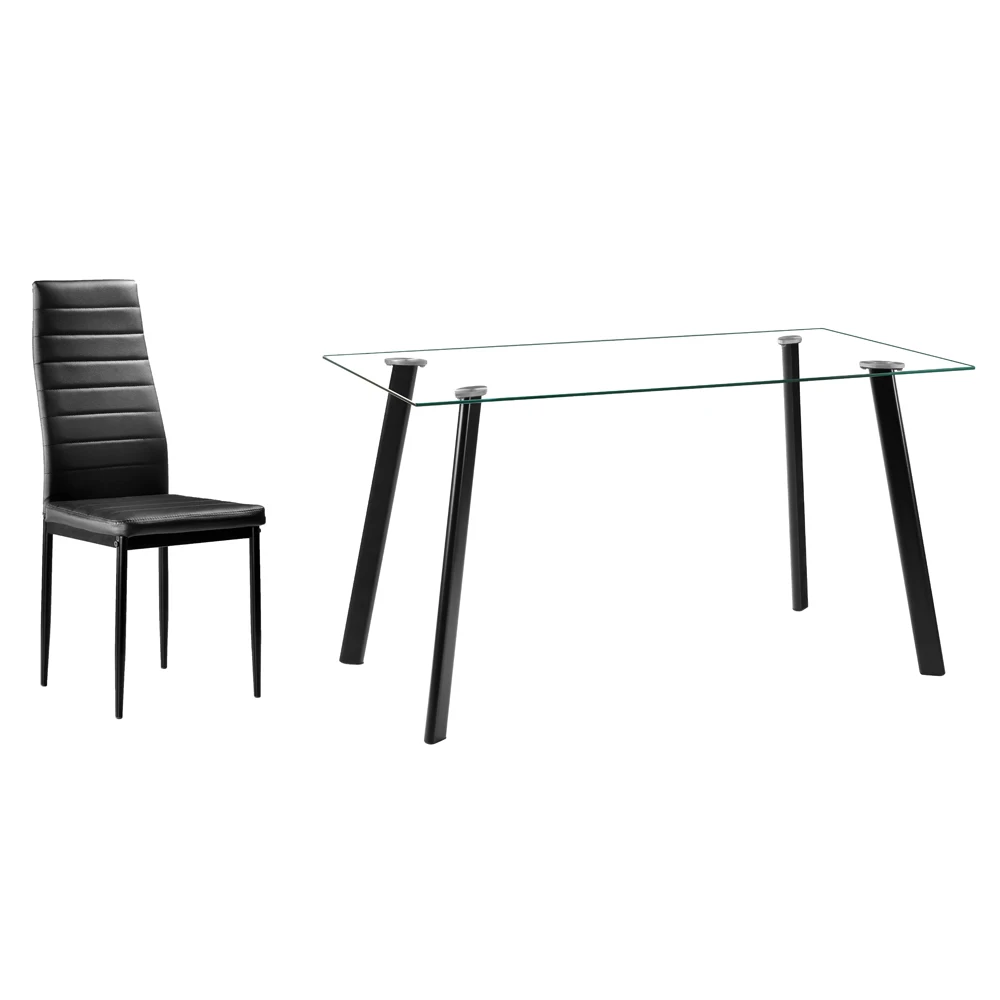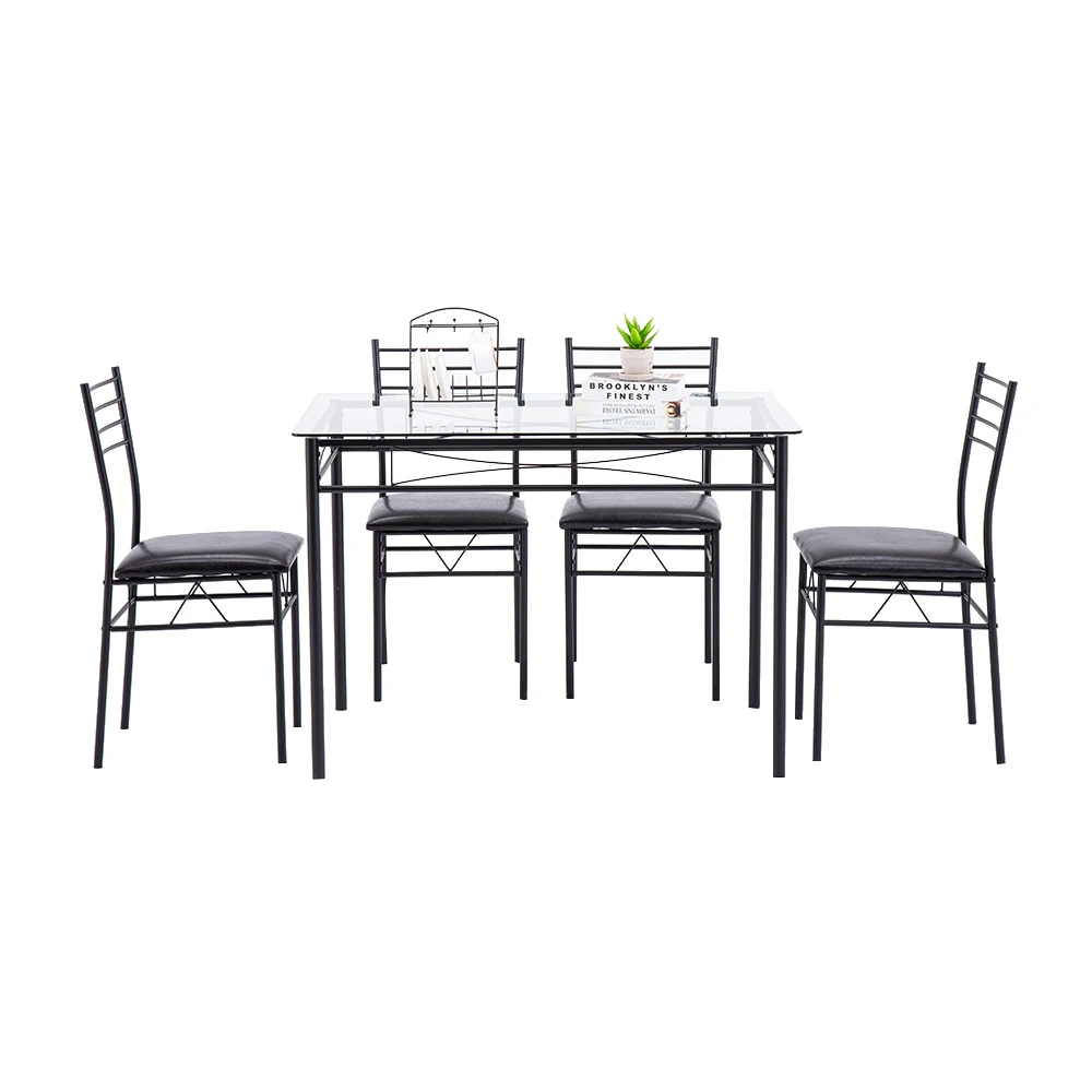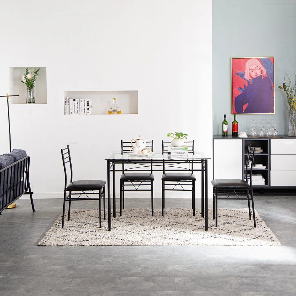 36919194 [110x70x76 см] Железный стеклянный обеденный стол и стулья черный один стол и четыре стула PU Подушка