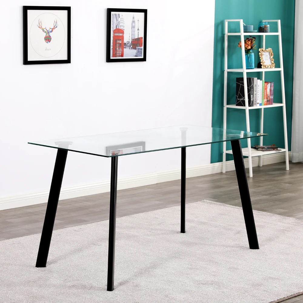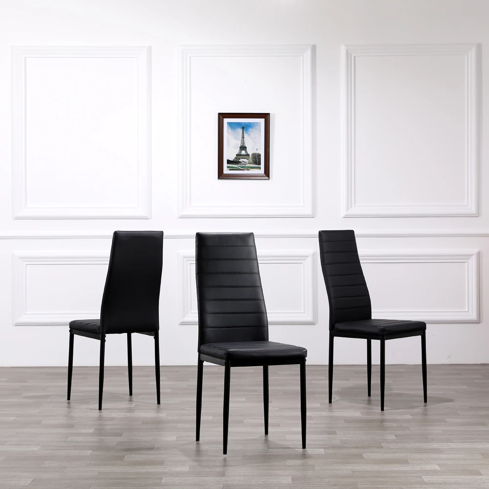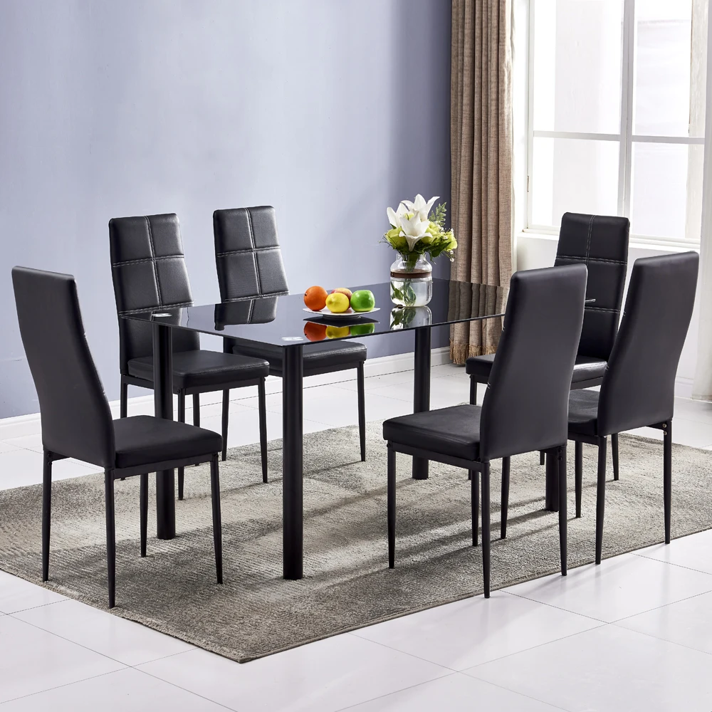 99723183 простой Собранный обеденный стол из закаленного стекла и железа + 4 шт. элегантный Собранный зачистки текстура высокая спинка обеденные стулья черный