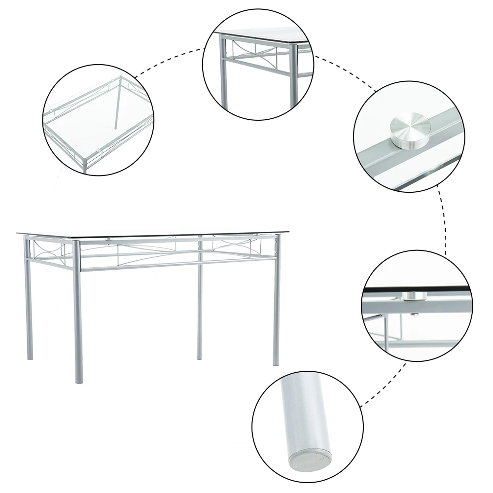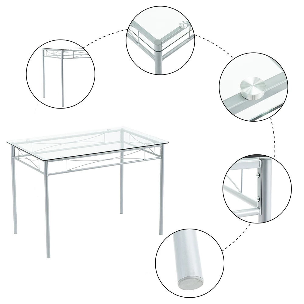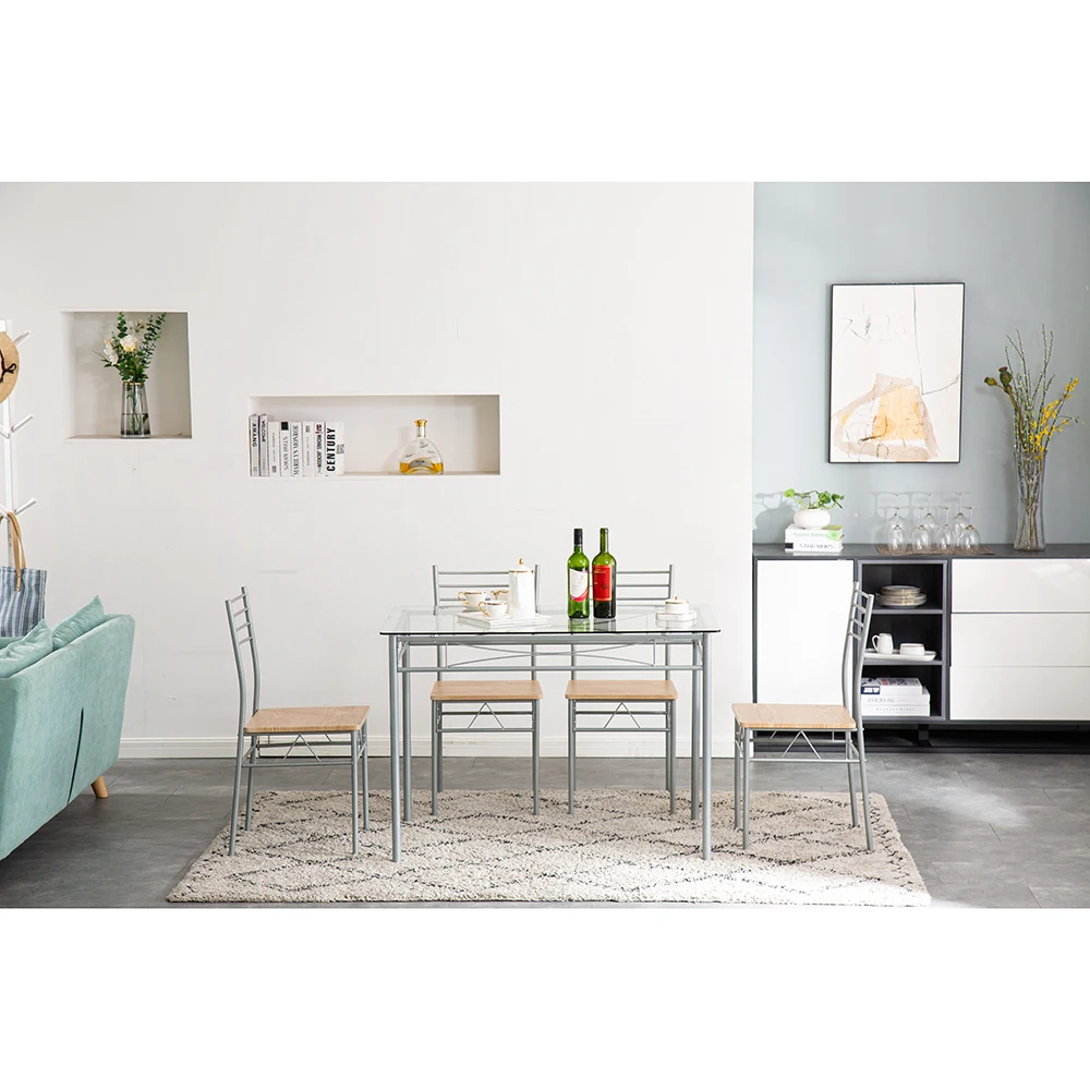 95820991 [110x70x76 см] Железный стеклянный обеденный стол и стулья серебряный один стол и четыре кресла МДФ подушка
