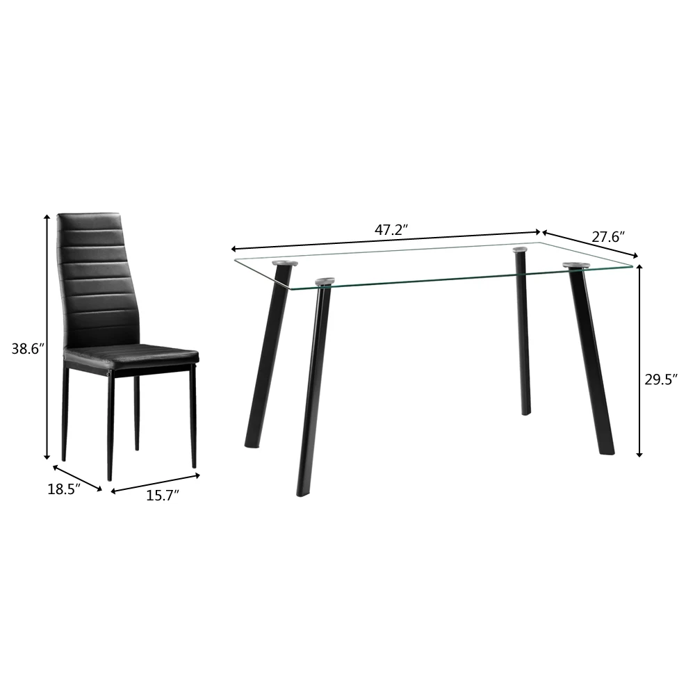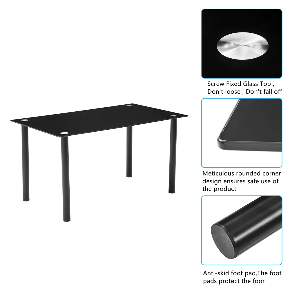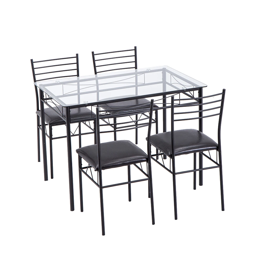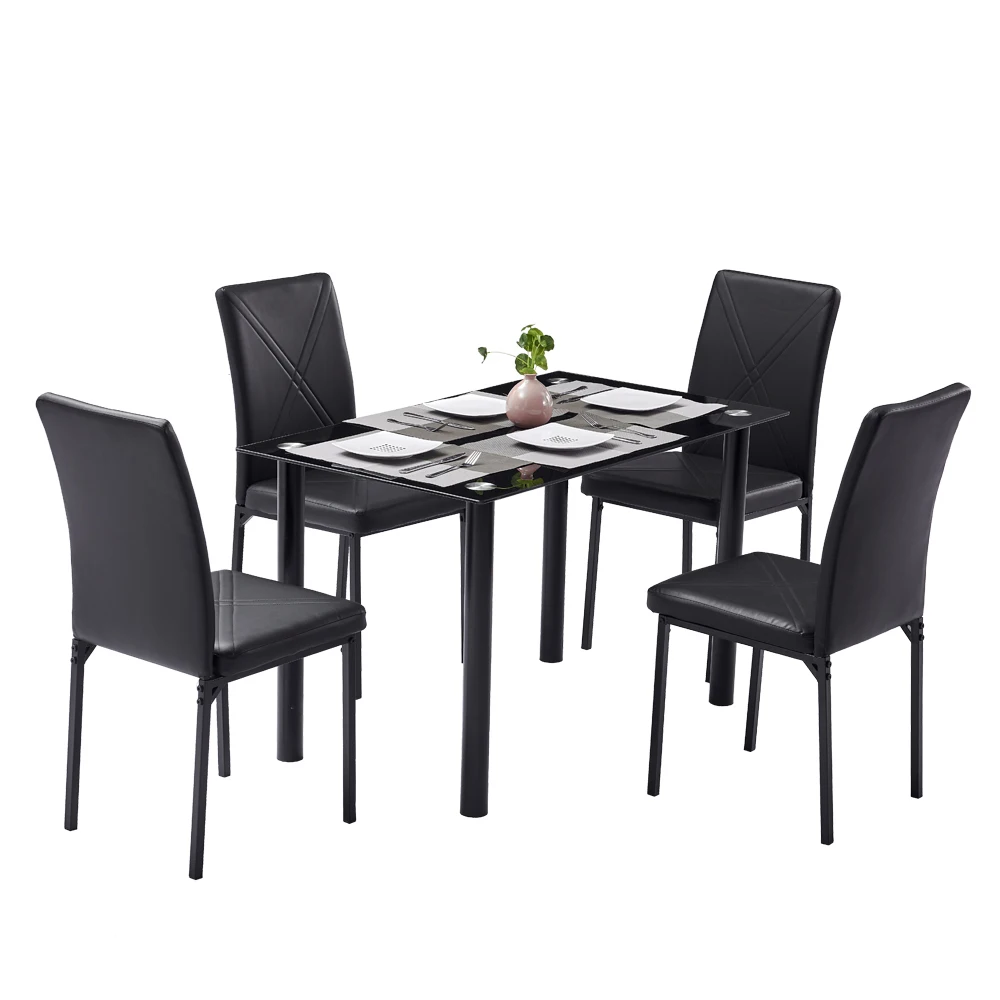 41207842 Горячая 5 шт обеденный стол набор 4 стула стеклянная металлическая кухонная мебель черный