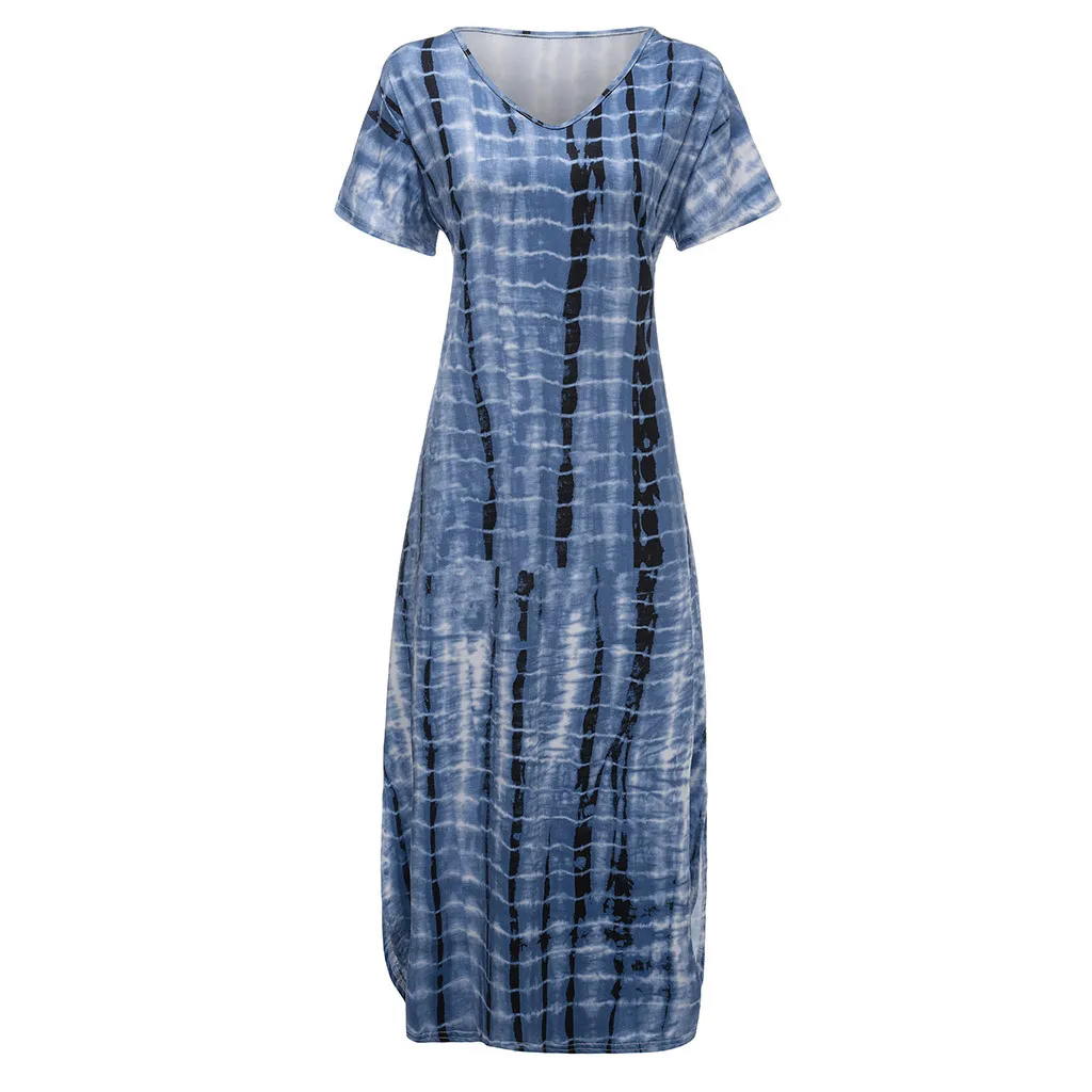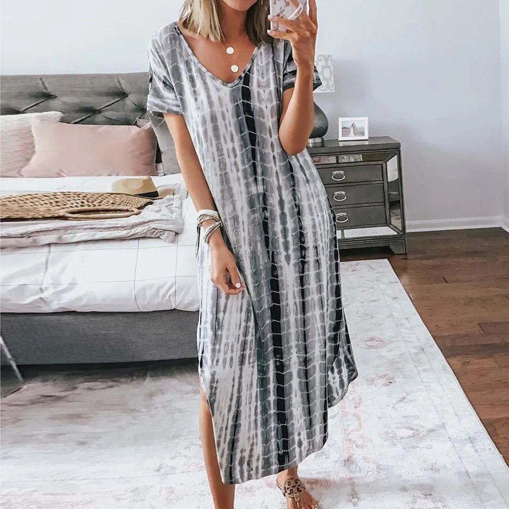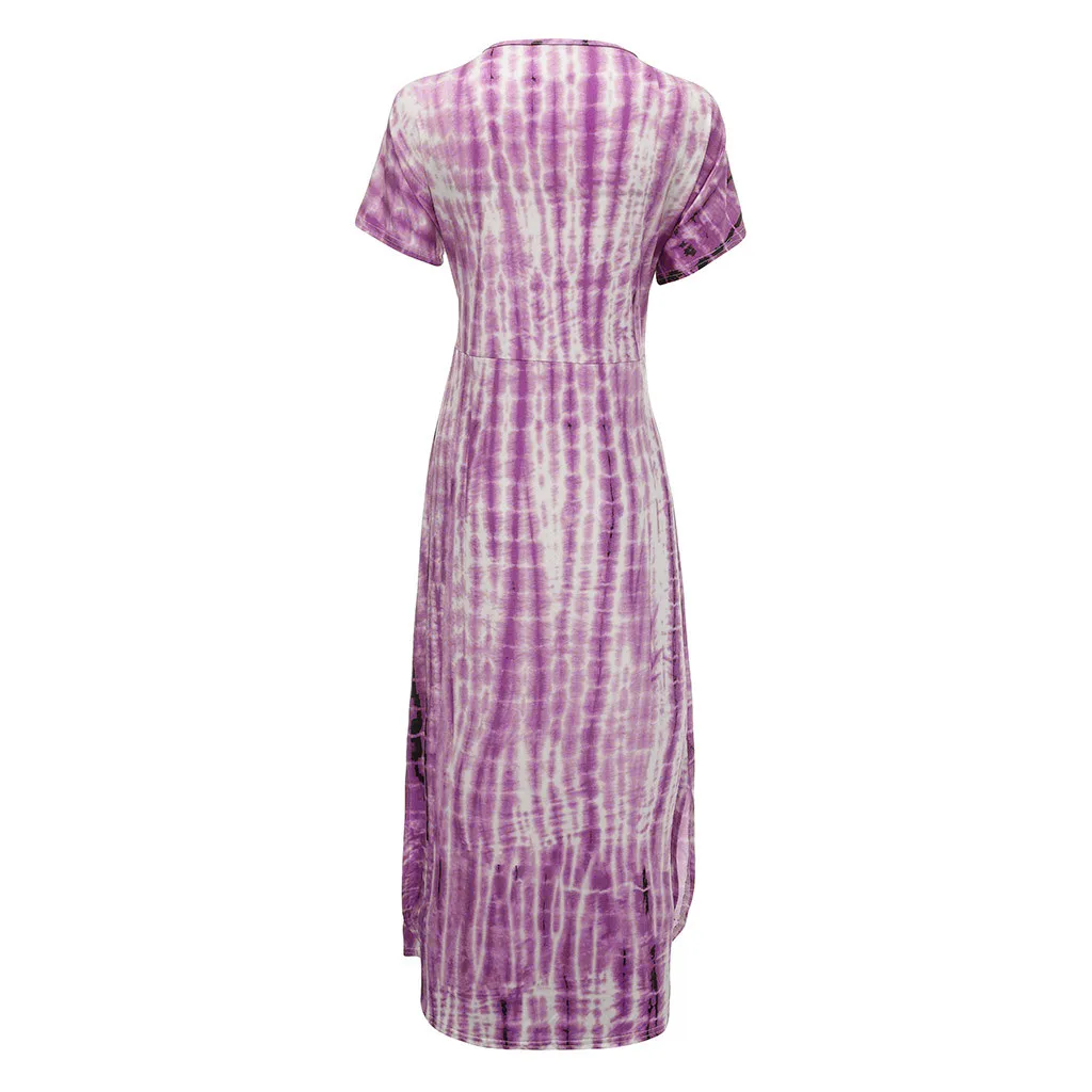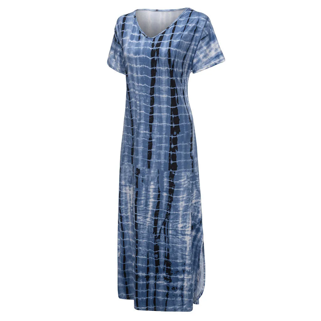 1.Features:Plus Size,V-Neck,Tie dyeing Print,Split,Short Sleeve,Dress.