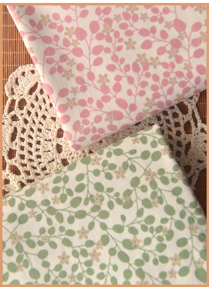 Двухцветная эластичная хлопковая ткань с маленькими фруктовыми и цветочными ветками