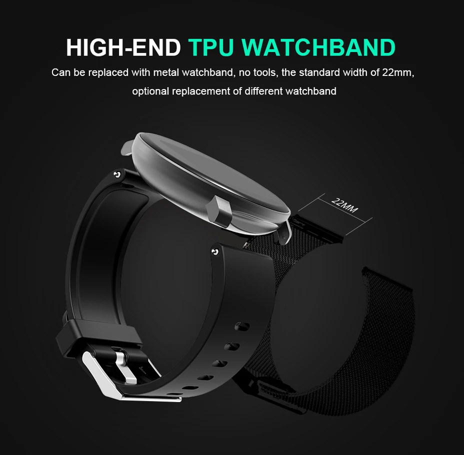 1,3 дюйма полный сенсорный экран Smartwatch --- IP67 водонепроницаемый рейтинг, он полностью водонепроницаемый при мытье рук или попадании в дождь. 7 дней работы от батареи, это идеальный компаньон, который держит вас организованным и продуктивным весь день.
