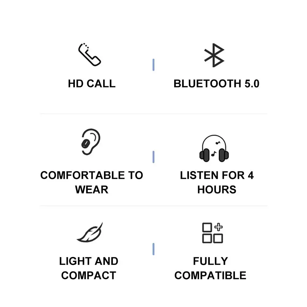 Особенности: 6D объемное звучание, 5,0 в обоих ушах чип, большая емкость, беспроводная гарнитура Bluetooth. Графеновая басовая диафрагма, Hi-Fi высокочастотная технология, 10 мм динамический динамик. Два способа подключения: один/двойной свободный в использовании, одиночное ухо, прослушивание в одиночестве, прослушивание Hi-Fi стерео в обоих ушах. Binaural HD вызов, 5,0 Автоматическое Сопряжение загрузки, Встроенный активный шумоподавление IC. Функция: бинауральный hd-вызов, воспроизведение паузы, ответ на вызов, Отклонение вызова, воспроизведение конечного номера, вызов Siri, переключение песни вверх и вниз, Автоматическое Сопряжение, интеллектуальное шумоподавление, никаких задержек в игре. Спецификация: Название: bluetooth-гарнитура T9 Версия Bluetooth: 5,0 Расстояние Bluetooth: около 10 м Время разговора: около 3-4 ч (однократное использование полной мощности) Время прослушивания песни: около 3-4 ч (полное использование) Емкость аккумулятора: 380 мАч Функция: бинауральный hd-вызов, воспроизведение паузы, ответ на вызов, Отклонение вызова, завершение воспроизведения, вызов Siri, переключатель песни вверх и вниз, автоматическая загрузка, Автоматическое Сопряжение, умное шумоподавление, без каких-либо задержек в игре Применимо: умный мобильный телефон, планшет (Android / i0s) Упаковочный лист: 1 * T9 bluetooth-гарнитура 1 * Руководство пользователя 1 * зарядный кабель (type-c)