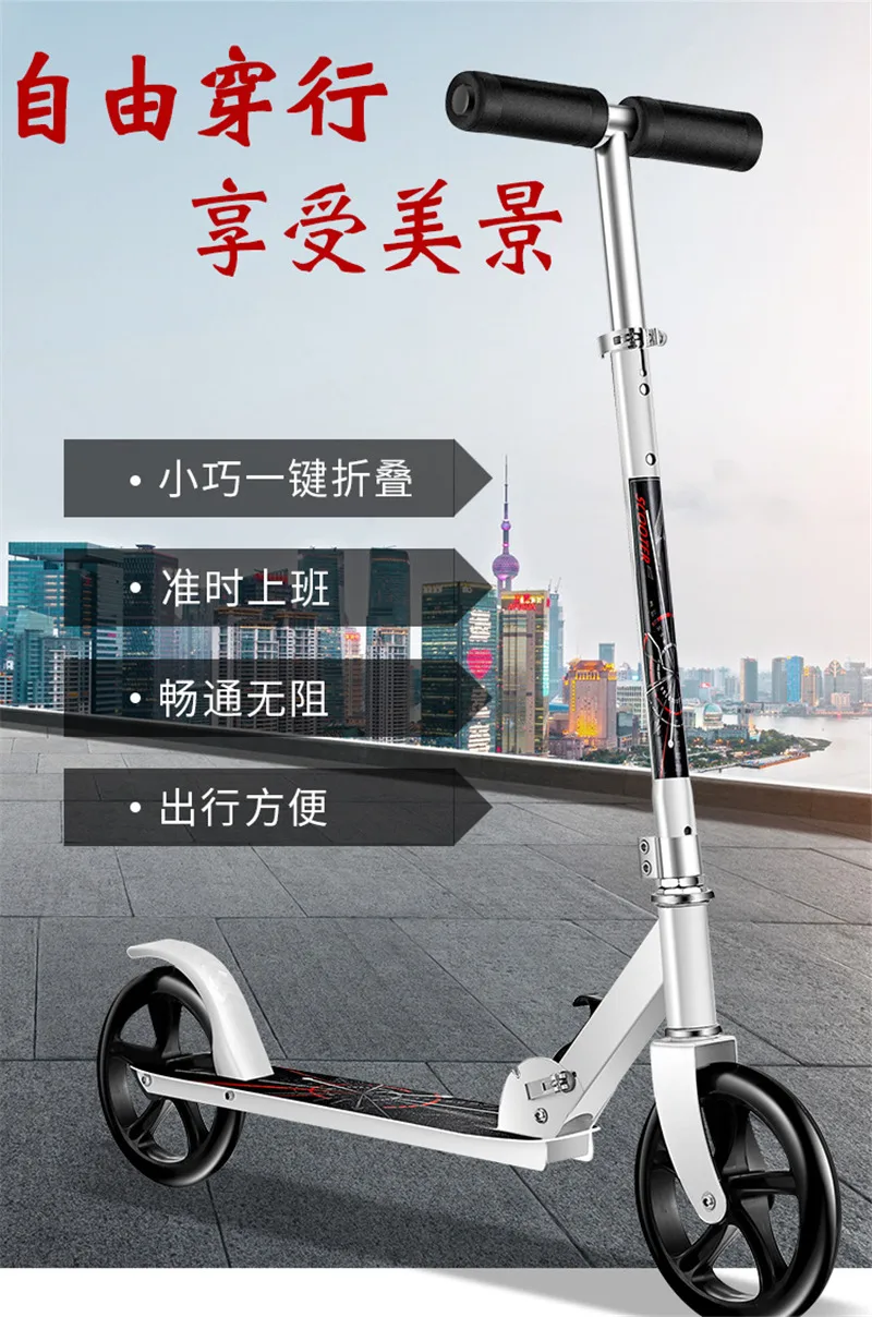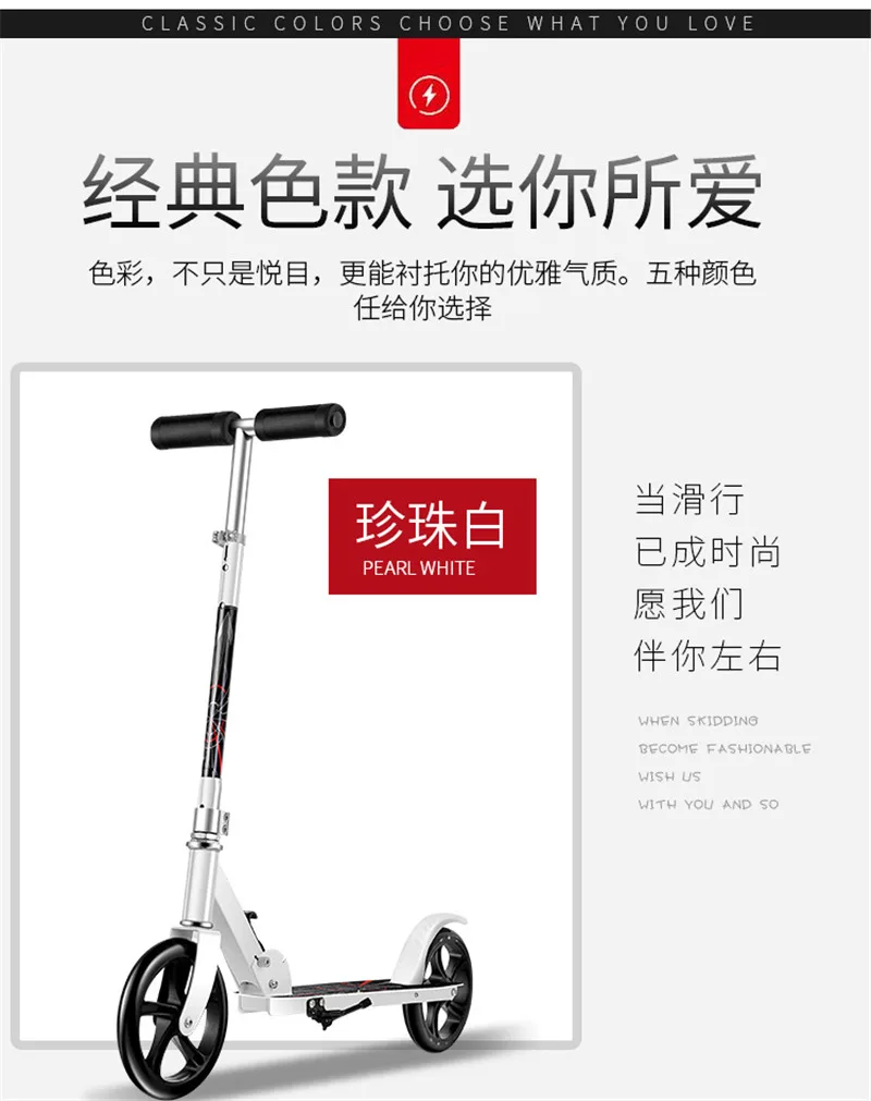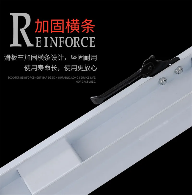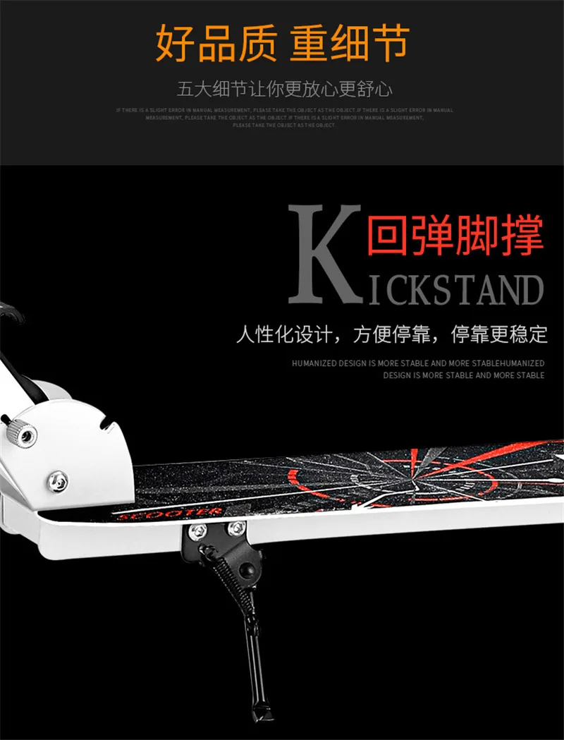 Скутер изготовлен из высокопрочного железного материала, может выдерживать вес до 200 кг; Колесо диаметром 200 мм, быстрее и удобно; Ручка может регулироваться в соответствии с ростом детей и взрослых;
