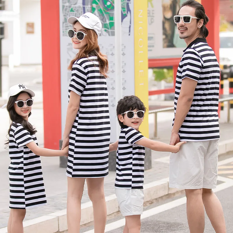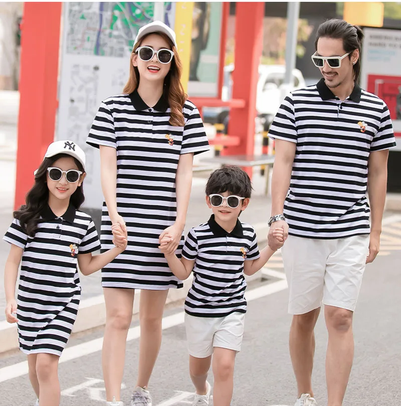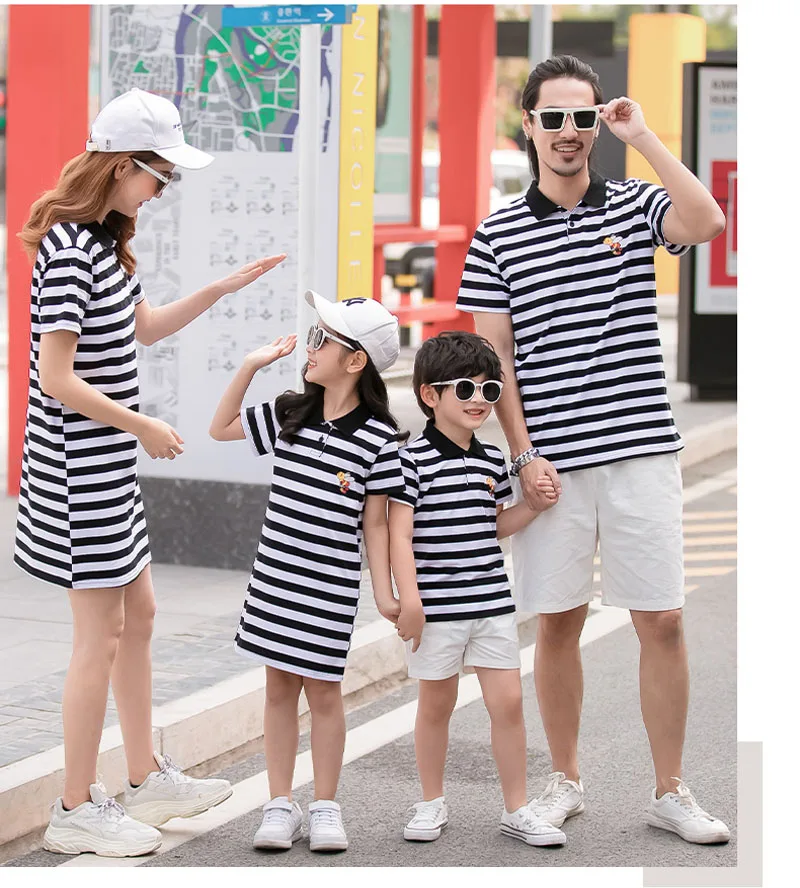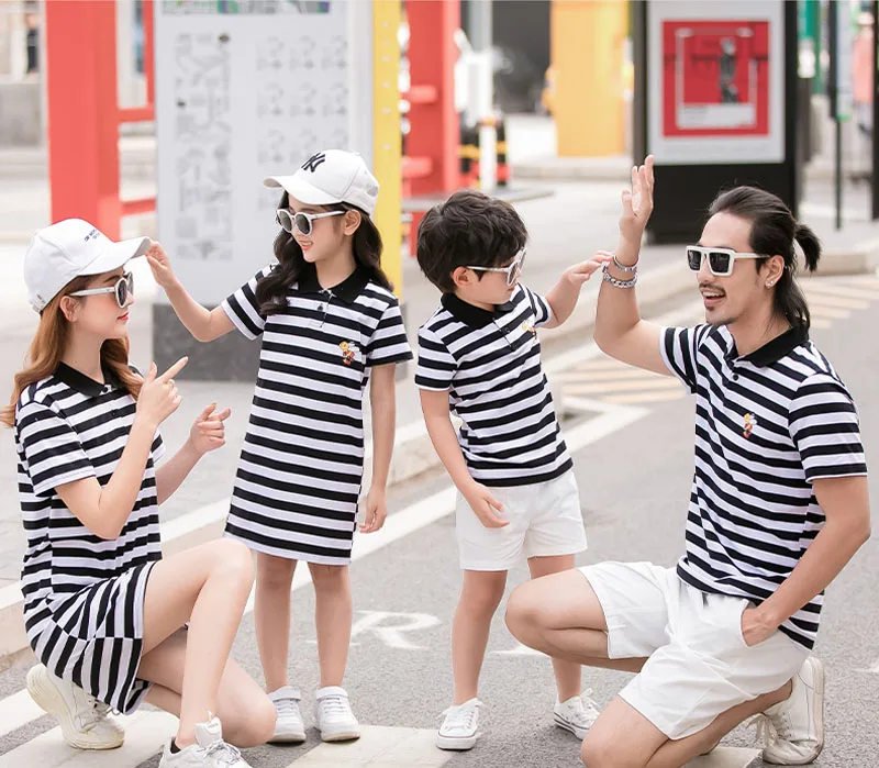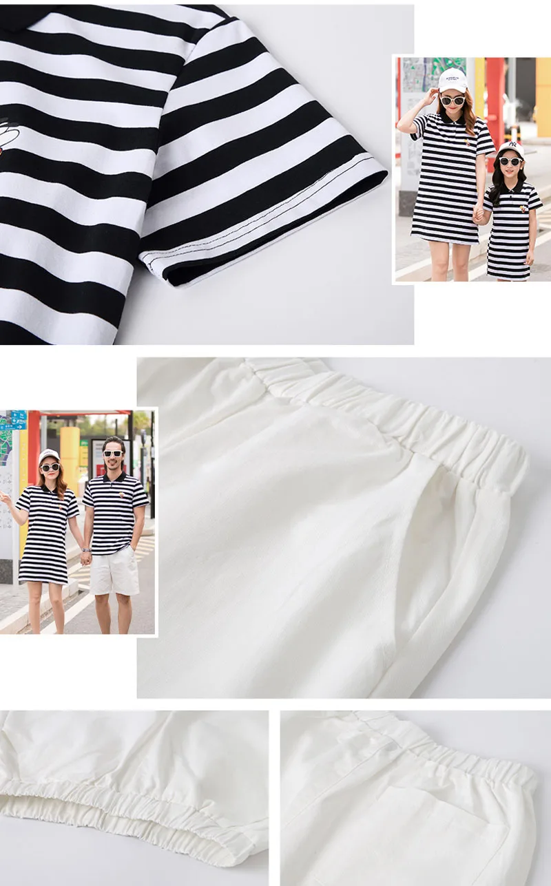 Футболка и короткие штаны для мальчиков и пап. Платье для мамы и девочки.