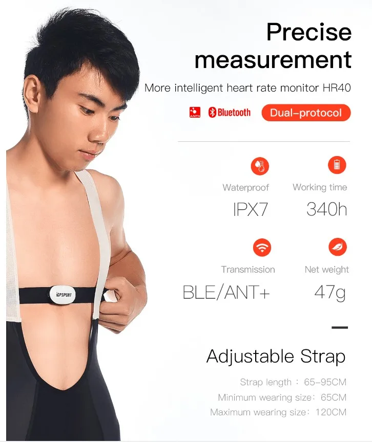 Удобный тканевый ремешок, тонкий, эргономичный светильник. Между тем Срок службы батареи составляет 340 часов. HR40 поддерживает подключение к iGPSPORT велосипедным компьютерам или смартфонам для синхронизации данных сердечного ритма в реальном времени с облачной платформой iGPSPORT для анализа данных обучения, проверки эффекта обучения, управления планом обучения и поддержания хорошего состояния обучения.