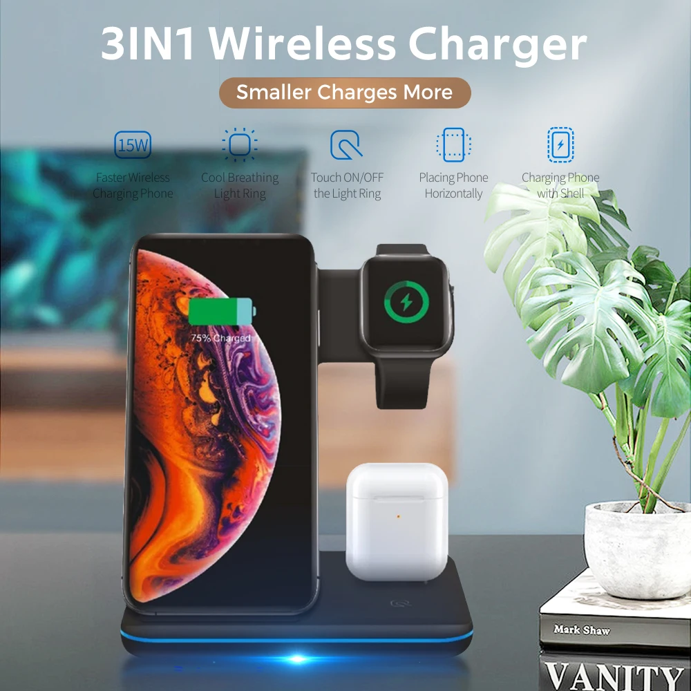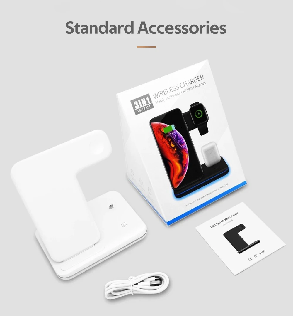 Беспроводное зарядное устройство 3 в 1, 1 шт. Зарядный кабель USB Type-C, 1 шт. 1 x Руководство пользователя