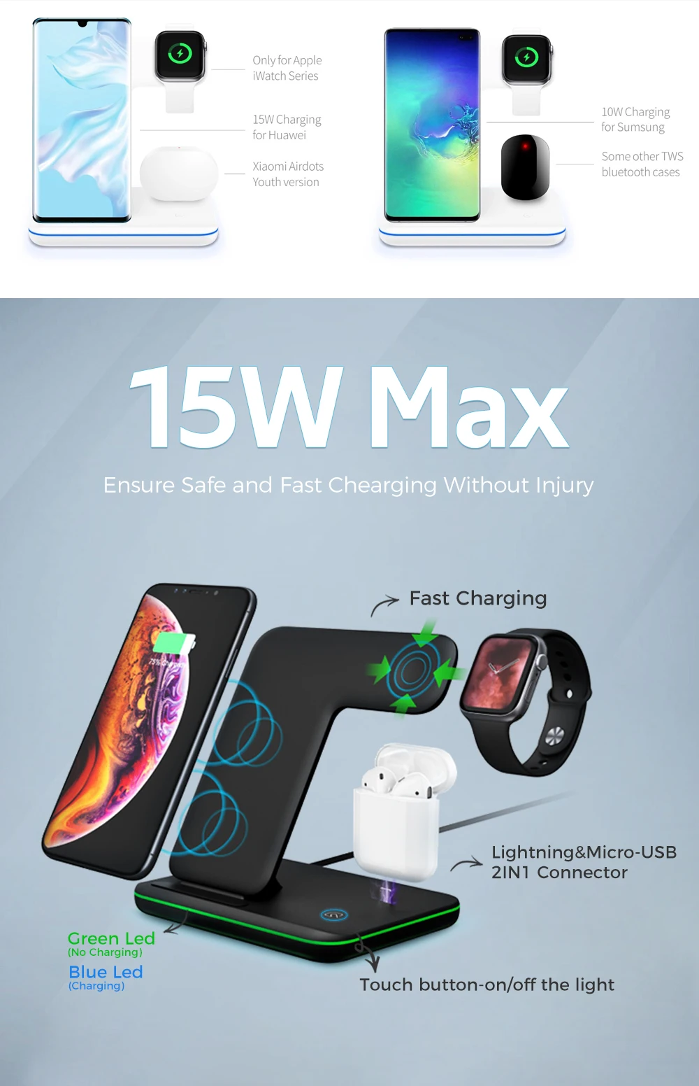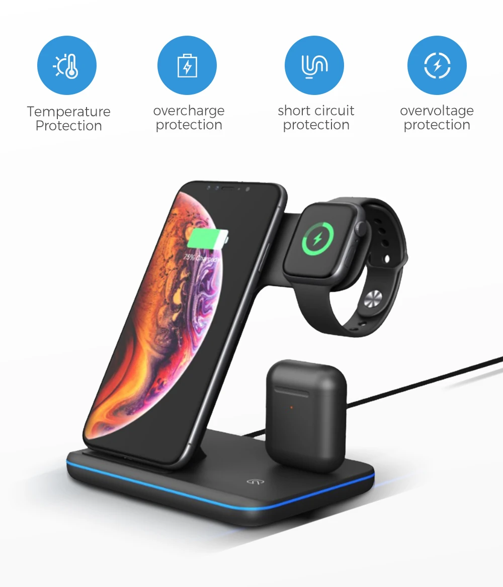 Беспроводное зарядное устройство Robotcube 15 Вт, быстрая подставка для телефона 11 XS XR X 8 S10 S9 10 Вт 3 в 1, зарядная док-станция для часов 5 4 3 2 1