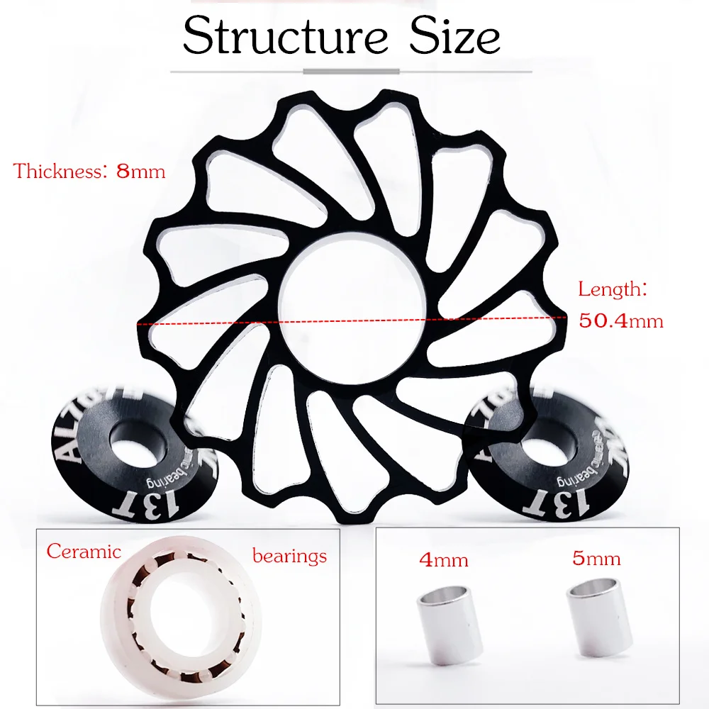 Бренд: VXM Размеры: до 13 ти лет Цвет: черный, красный, синий, золотой, серебристый Вес: 8,2 г Диаметр: 51 мм Структура: керамические подшипники Материал: 7050 алюминиевый сплав Название продукта: велосипед керамика жокейное колесо задний переключатель Шкив