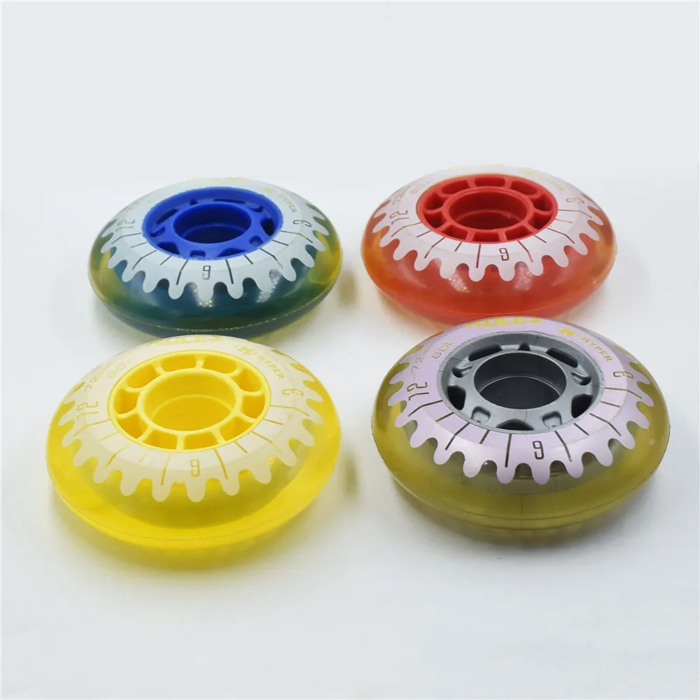 Колесо с хорошей эластичностью для детских роликовых коньков и хоккейных коньков; Размер диаметром 72 мм с толщиной 24 мм; Используется 608 стандартных подшипников; Твердость 80A / 82A;