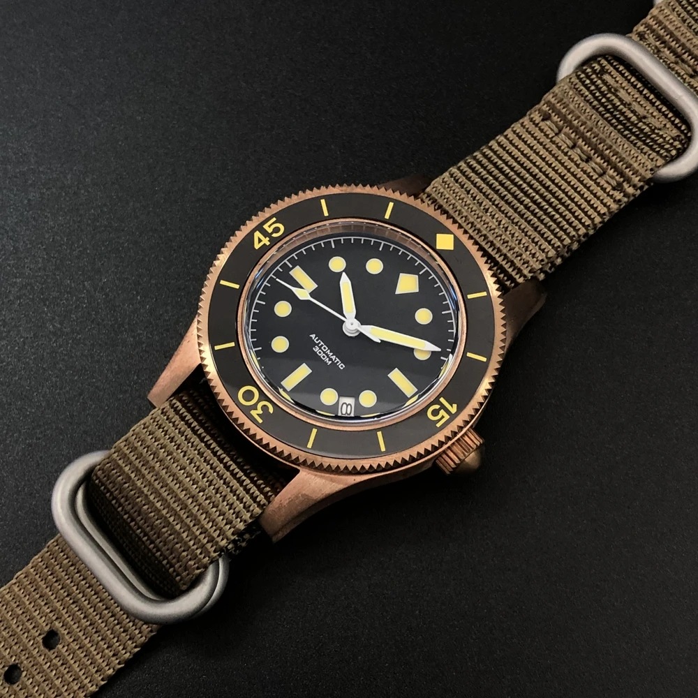 Стальные часы для дайвинга 1952S, бронзовые часы, мужские часы, автоматические, лучший бренд, Роскошные, CuSn 8, бронзовые часы для дайвинга, 300 м, сапфировое стекло, C3, светящиеся