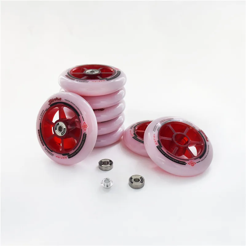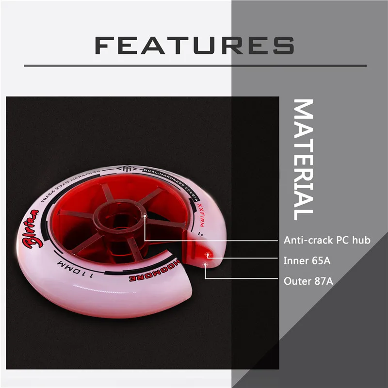 Высококачественное двойное твердое профессиональное скоростное колесо с внешней твердостью 87A и внутренней твердостью 65A, такой же дизайн и материал с MPC XXFirm; Концентратор изготовлен из высокопрочного антитрещинного поликарбоната; Выдающееся преимущество этого колеса заключается в отсутствии вибрации и плавном отслеживании движения; Пирс для 8 колес, Вы также можете выбрать сочетание колес и керамических подшипников, они являются лучшим партнером!
