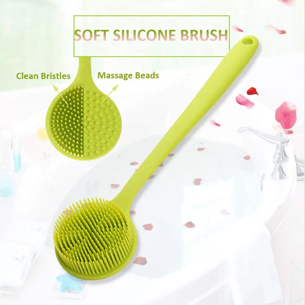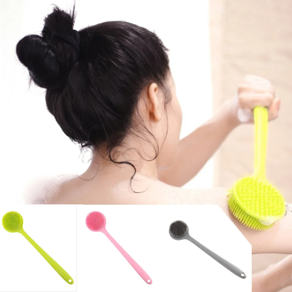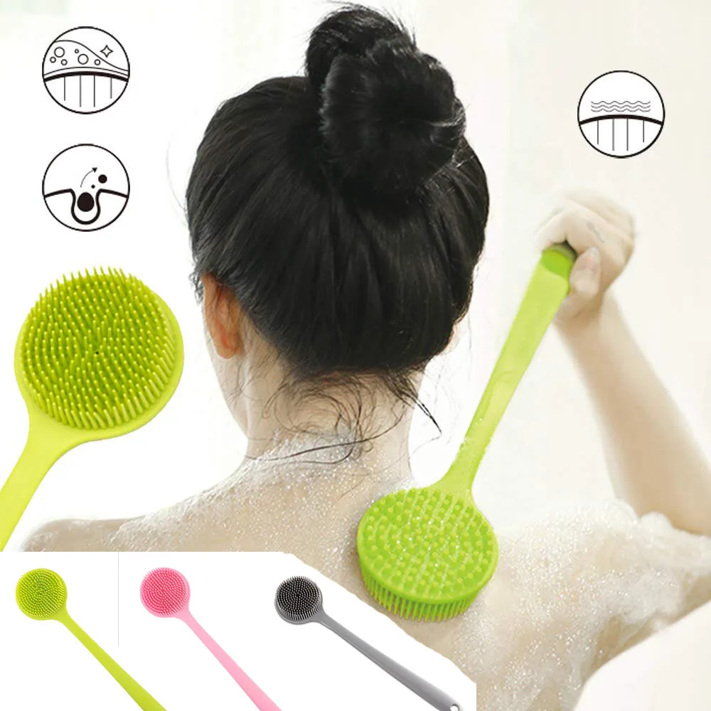 Двухсторонняя силиконовая щетка для душа 2 в 1 с длинной ручкой для ванной, Массажная щетка для купания, аксессуары для отшелушивания спины