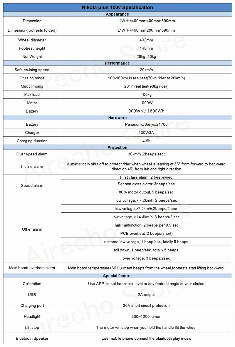 Модель: GotWay Nikola Plus Мощность двигателя: 1900 Вт Аккумулятор: 100 в 1800Wh Тип батареи: LG21700 Заводская скорость: 30 км/ч Максимальная скорость: 55-60 км/ч Максимальный диапазон: 150-180 км Максимальная нагрузка: 100 кг Максимальный подъем: 30 ° Вес нетто: 30 кг Размер: 490*400*590 мм Размер шин: 17 дюймов Время зарядки: 6-12 часов Bluetooth динамик: Поддержка Водонепроницаемость: IP54 Встроенный руль: Да Подключение к приложению: Поддержка Посылка: 1 * GotWay Nikola Plus,1 * зарядное устройство