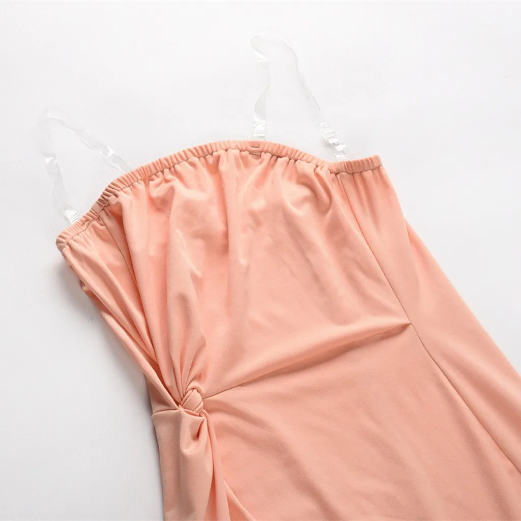 3. Скручивающийся узел сбоку,Асимметричный Подол с оборками, Застежка-липучка, прозрачные бретельки,Сексуальное платье-труба. Милый и милый, очаровательный и привлекательный. Простой, но модный.Покажите свои изгибы с шармом.