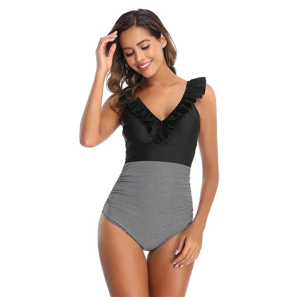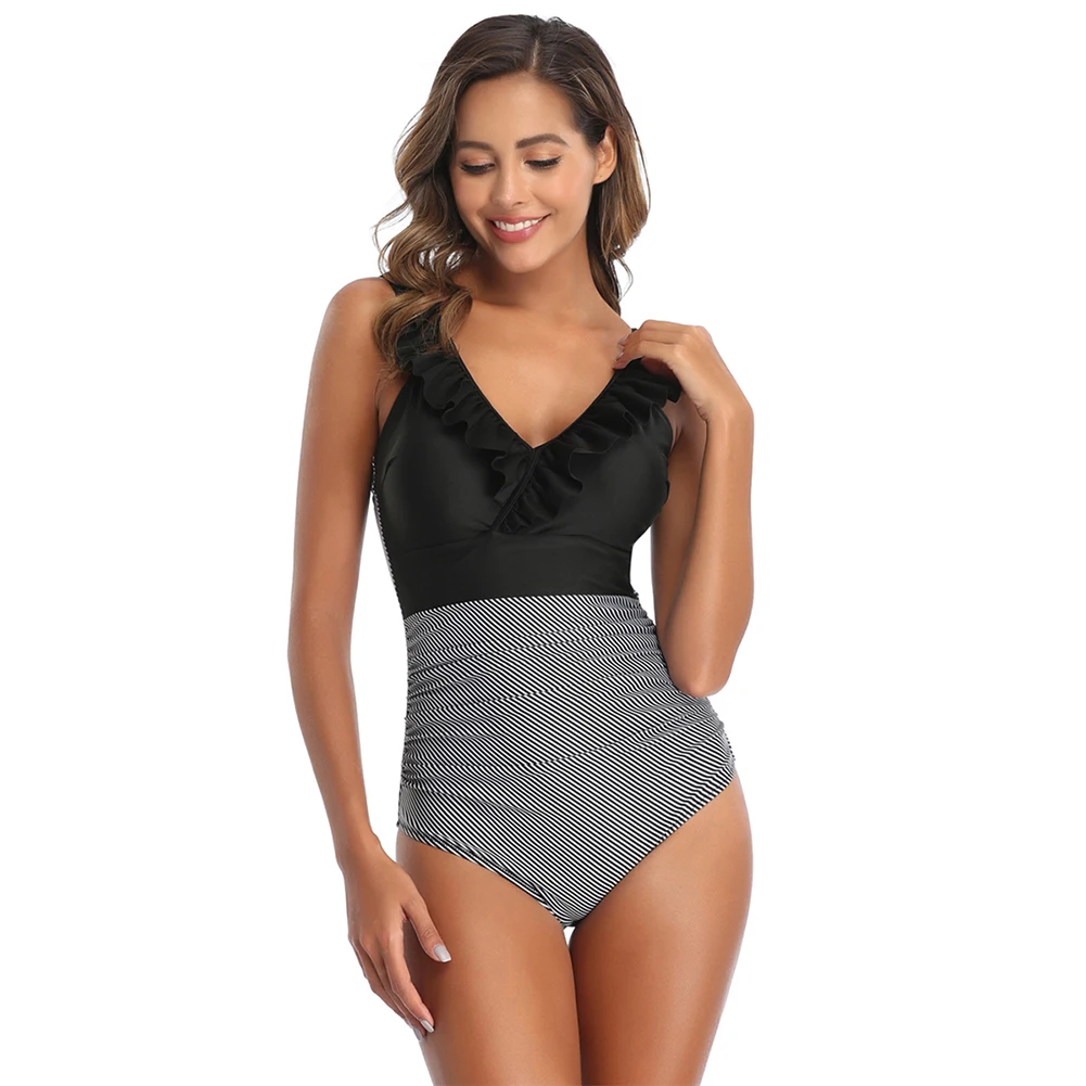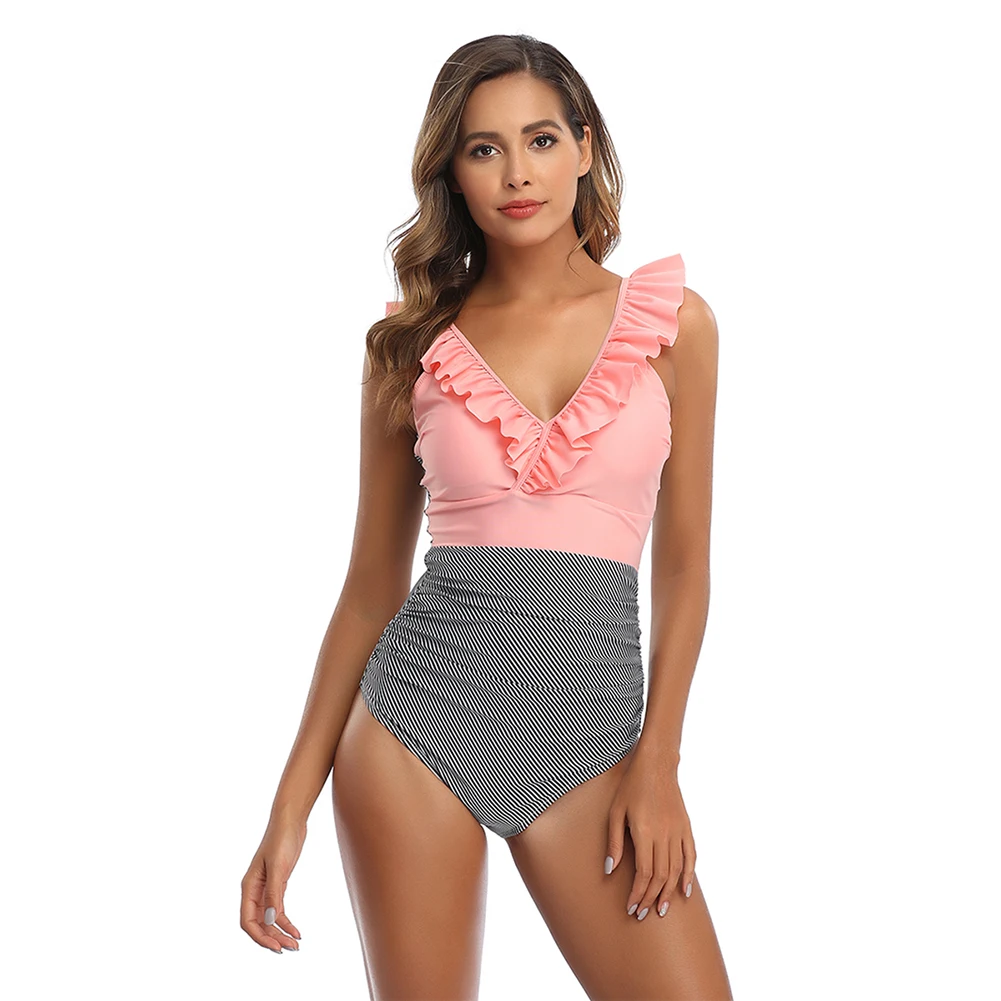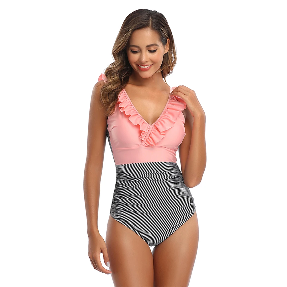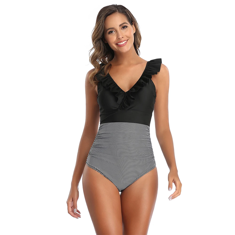 Название продукта: купальник с оборками и оборками; Цельный купальник с высокой талией