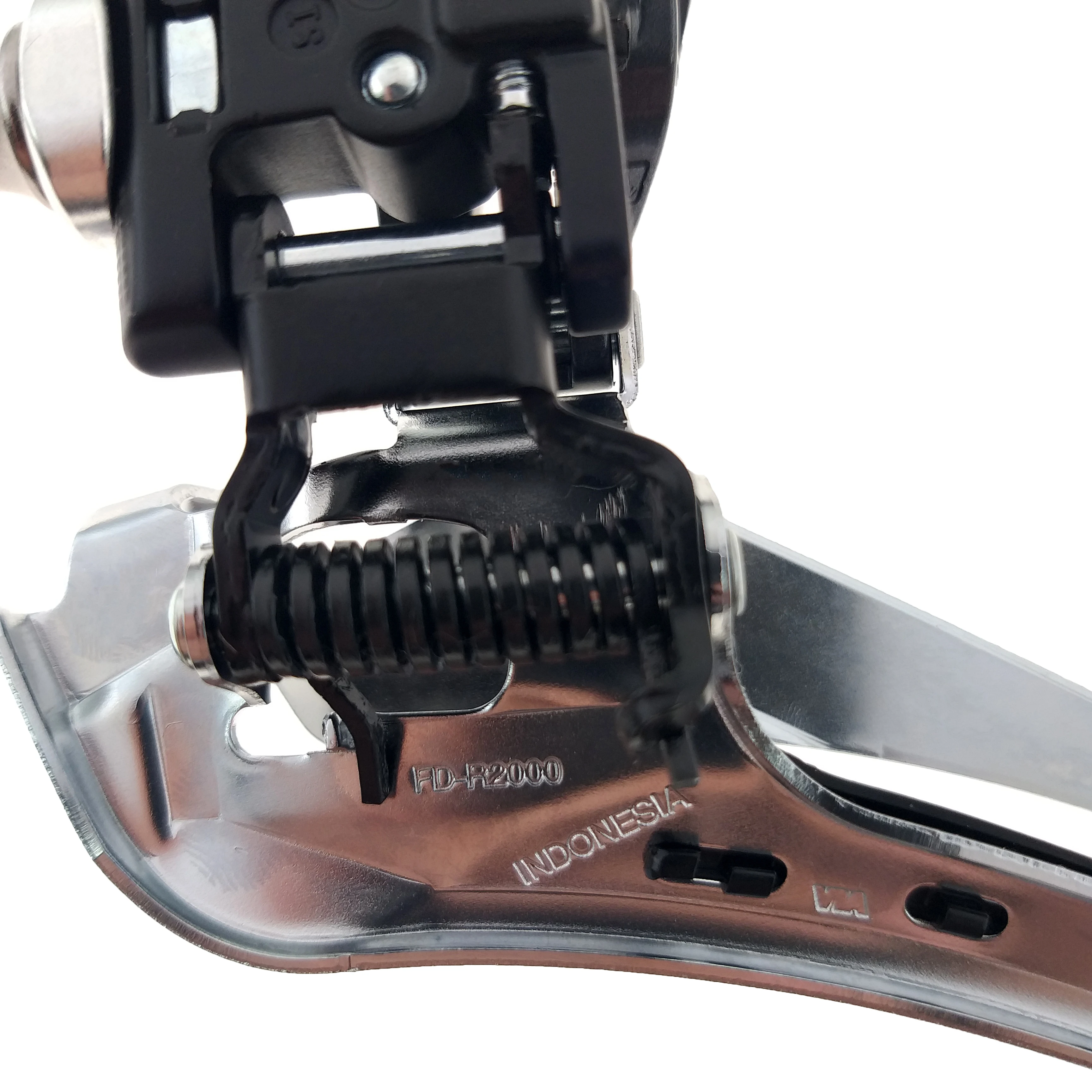 Compatible with 2x8 road drivetrains, the SHIMANO CLARIS R2000 front derailleur increases road riding enjoyment through light action and smooth gear transitions.