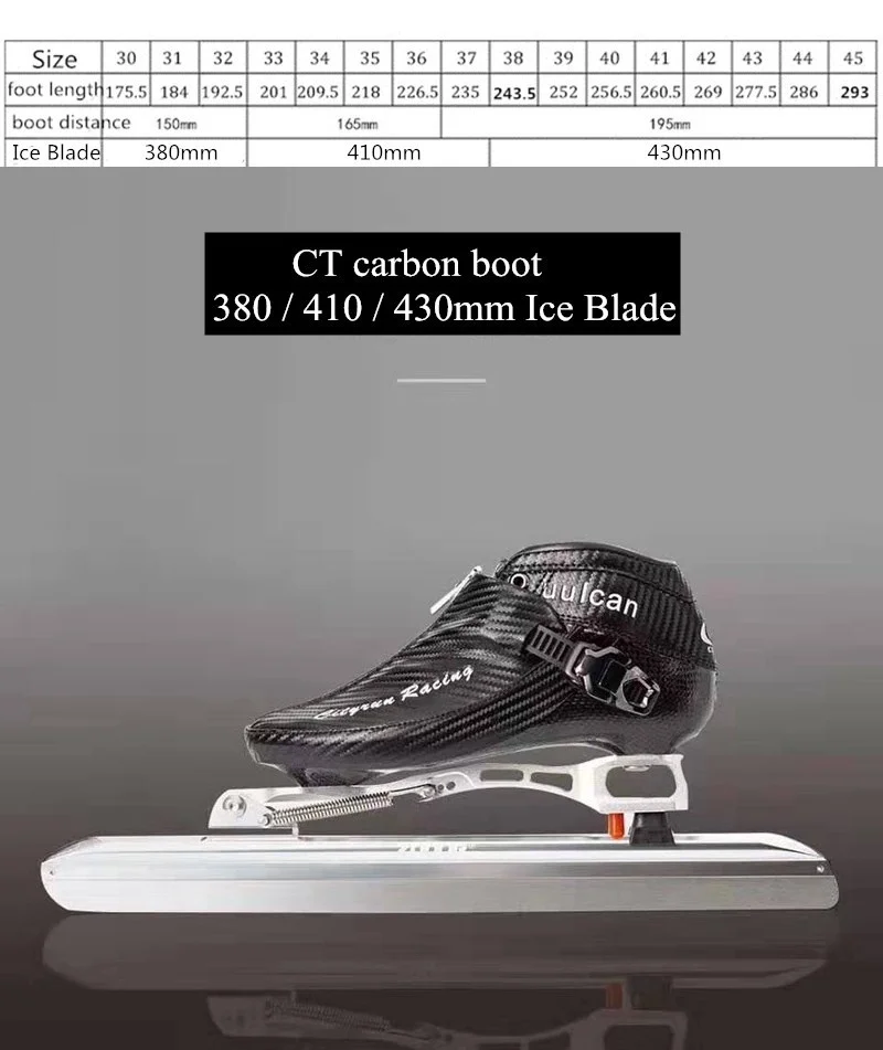 Для размера EUR 30-32, мы установим 380 мм лезвие для льда; Для размера EUR 33-37 мы установим лезвие для льда 410 мм; Для размера EUR 38-45, мы установим 430 мм лезвие для льда.