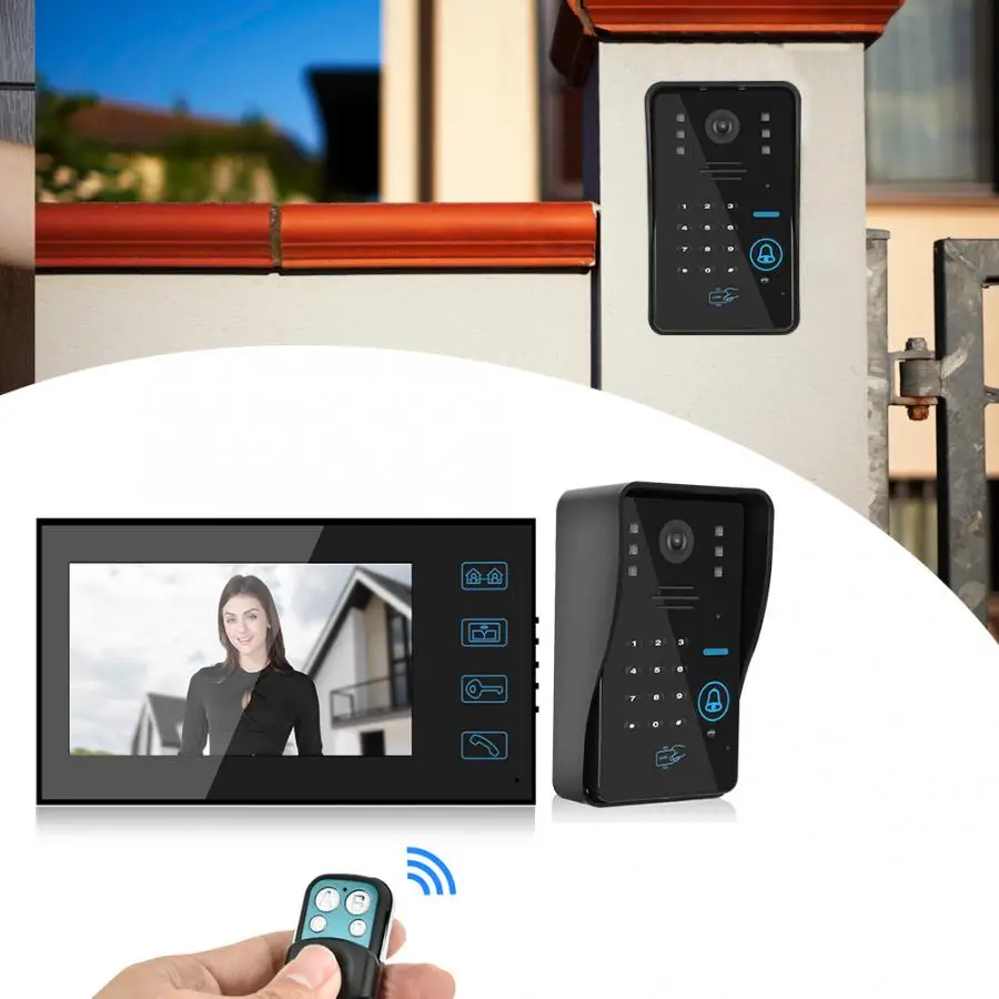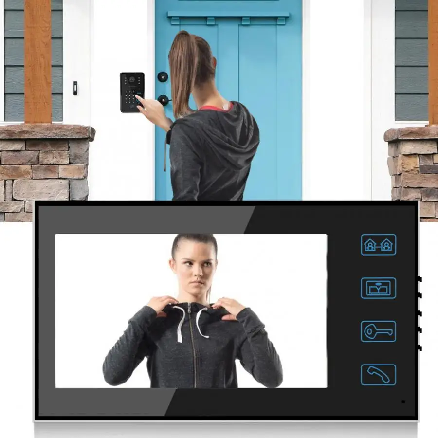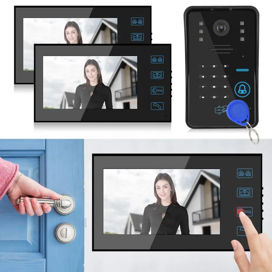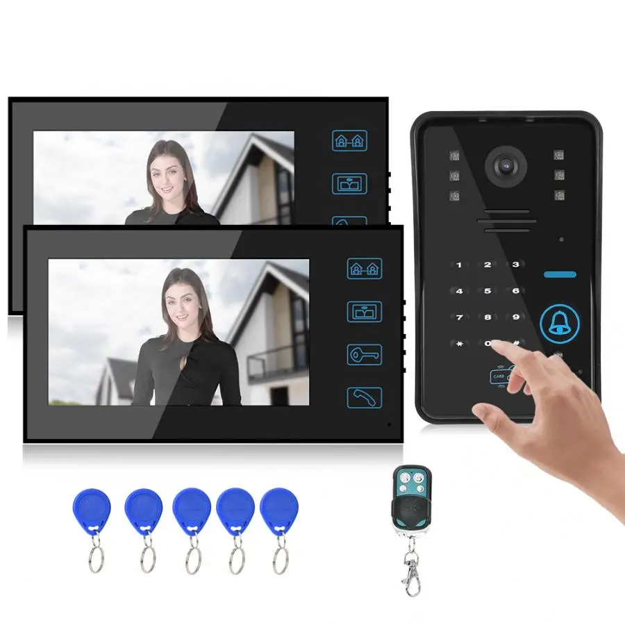 7in Video Doorbell Password Card Doorphone 2 Monitors Night Vision Intercom 100-240V