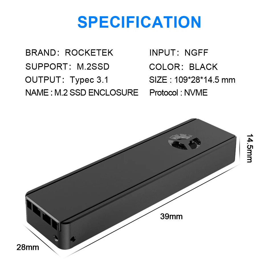 "M.2 интерфейс, первоначально называемый NGFF (nextgeneration formfactor) Это стандарт физических форм-факторов (форм-фактор); Физическая ширина составляет 22 мм, толщина одной стороны-2,75 мм, и теперь она называется M.2" Если скорость M.2 SSD превышает 600 м/с или если Nvme печатается на продукте, выберите корпус Nvme SSD Если скорость M.2 SSD ниже 600 м/с, или если SATA напечатан на продукте, выберите Корпус SATA SSD Потребители должны сделать точный выбор. Если вы не знаете, как выбрать, пожалуйста, сделайте фотографию вашего M.2 SSD и свяжитесь с онлайн-службой поддержки клиентов.