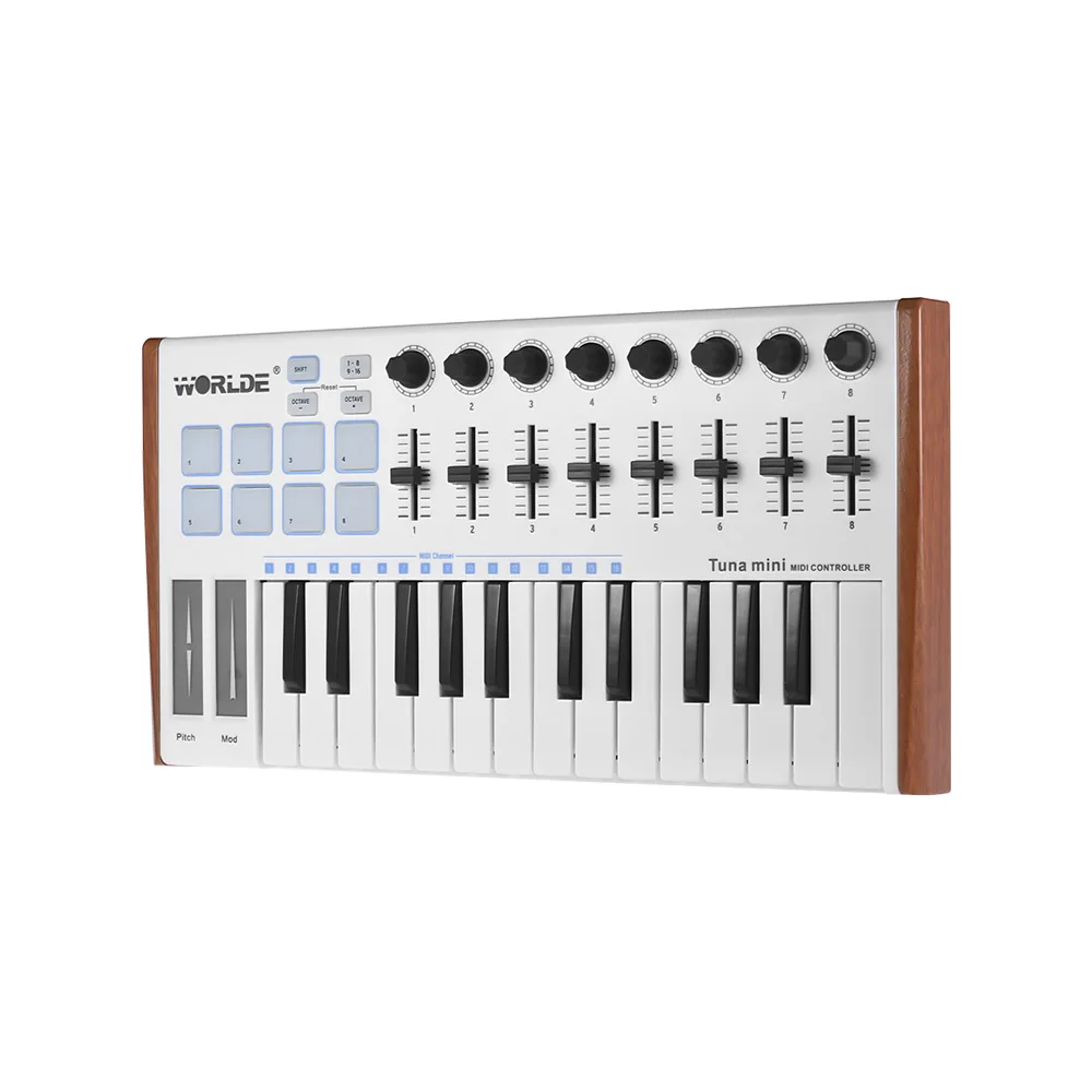 Новинка! WORLDE TUNA MINI ультра-портативный 25-клавишный USB MIDI контроллер клавиатуры 8 RGB триггерные подушки с подсветкой с 6,35 мм разъемом для педали
