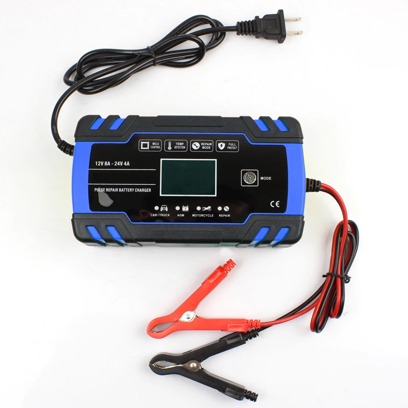 Автоматическое зарядное устройство для аккумулятора автомобиля, 12 В, 24 В, 8 а, с ЖК-дисплеем
