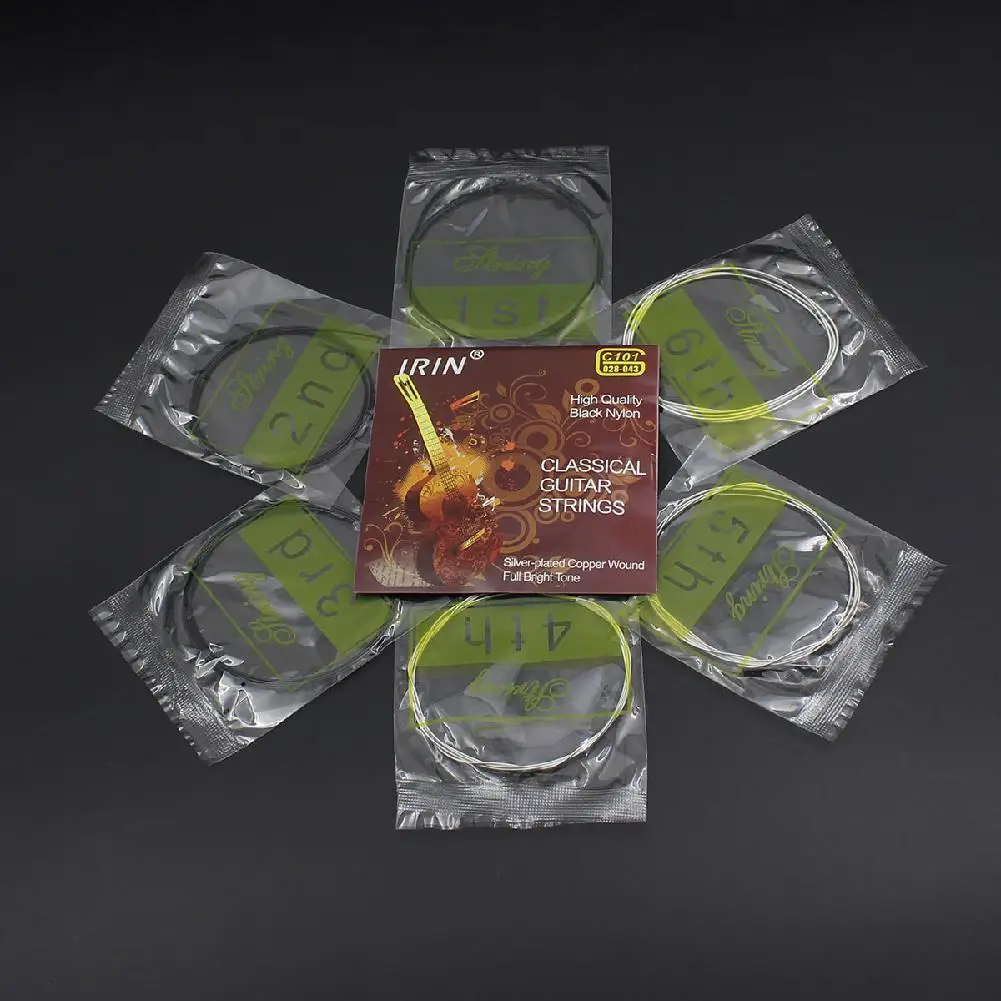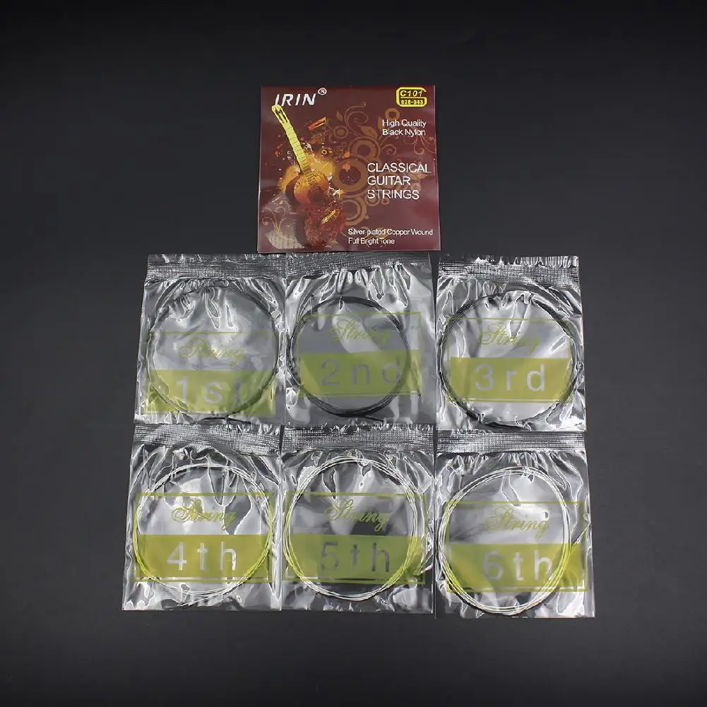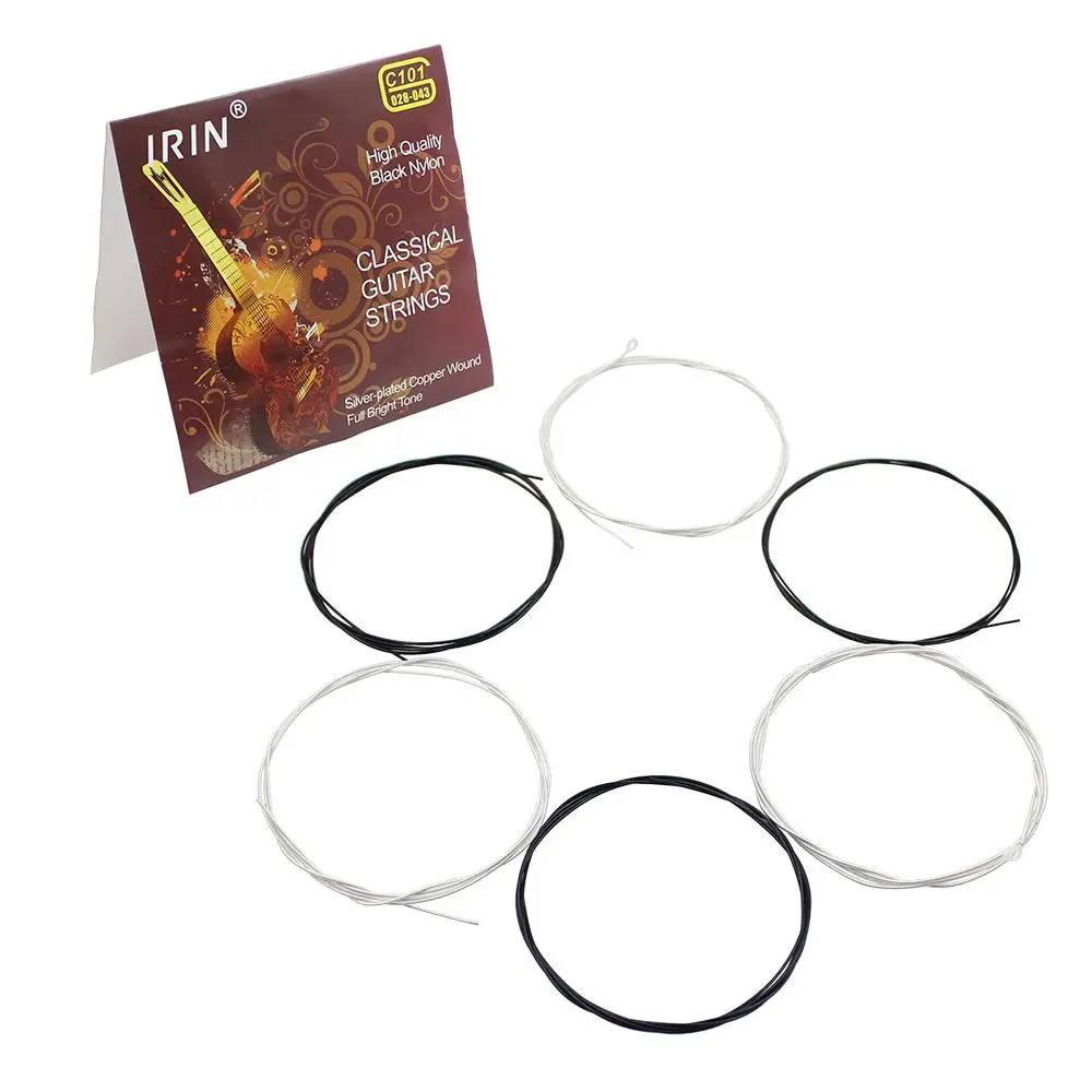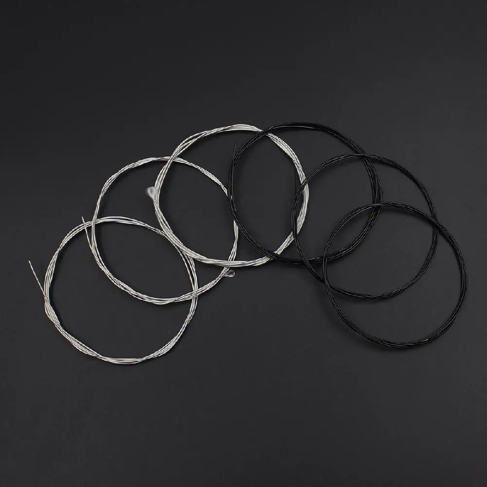 6x гитарных струн (3 шт. черные нейлоновые струны + 3 шт. Серебристые Металлические струны)