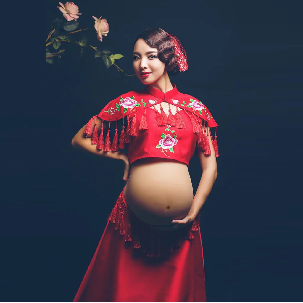Women Pregnants Photography Maternity Short Sleeves Print Floral Tops Long Dress