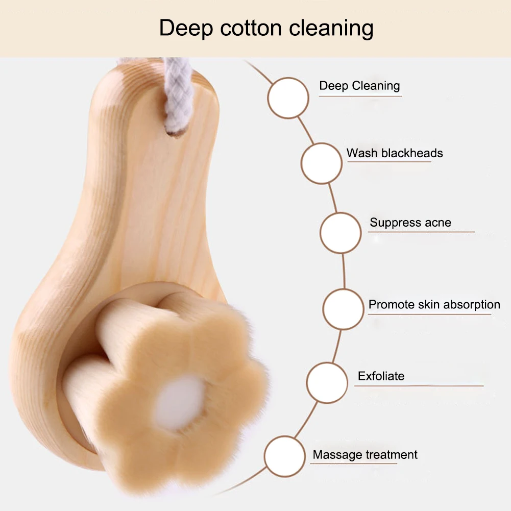 Женская деревянная Очищающая щетка для лица, Глубокая Чистка Пор, щетка для лица, мягкая волоконная кисть для лица, инструменты для красоты, ручная кисть для лица