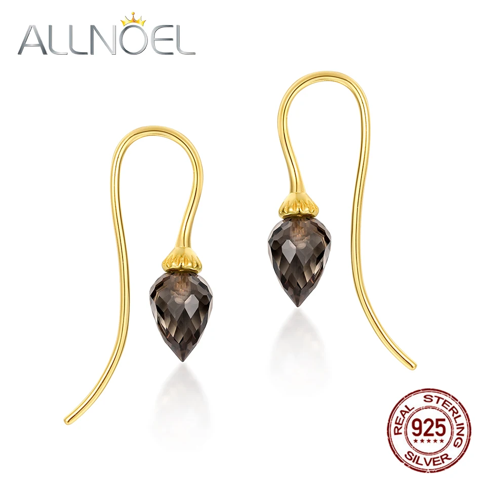 ALLNOEL 925 Стерлинговое Серебро Висячие серьги для женщин 100% натуральный дымчатый кварц драгоценный камень Золото Свадебные Роскошные ювелирные изделия оптовая продажа