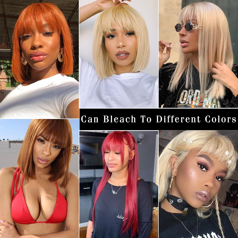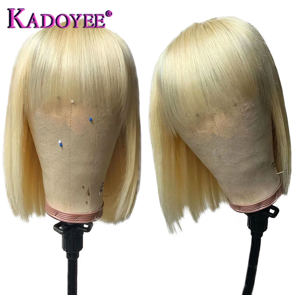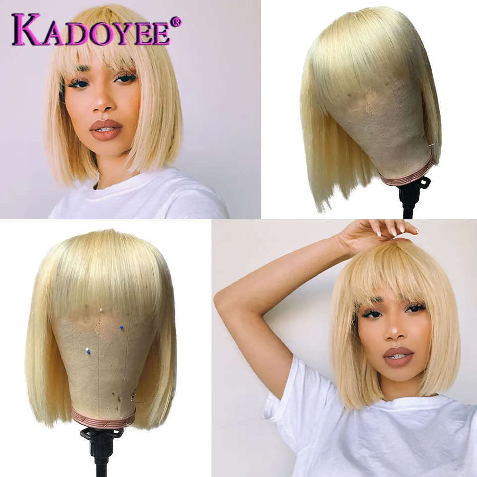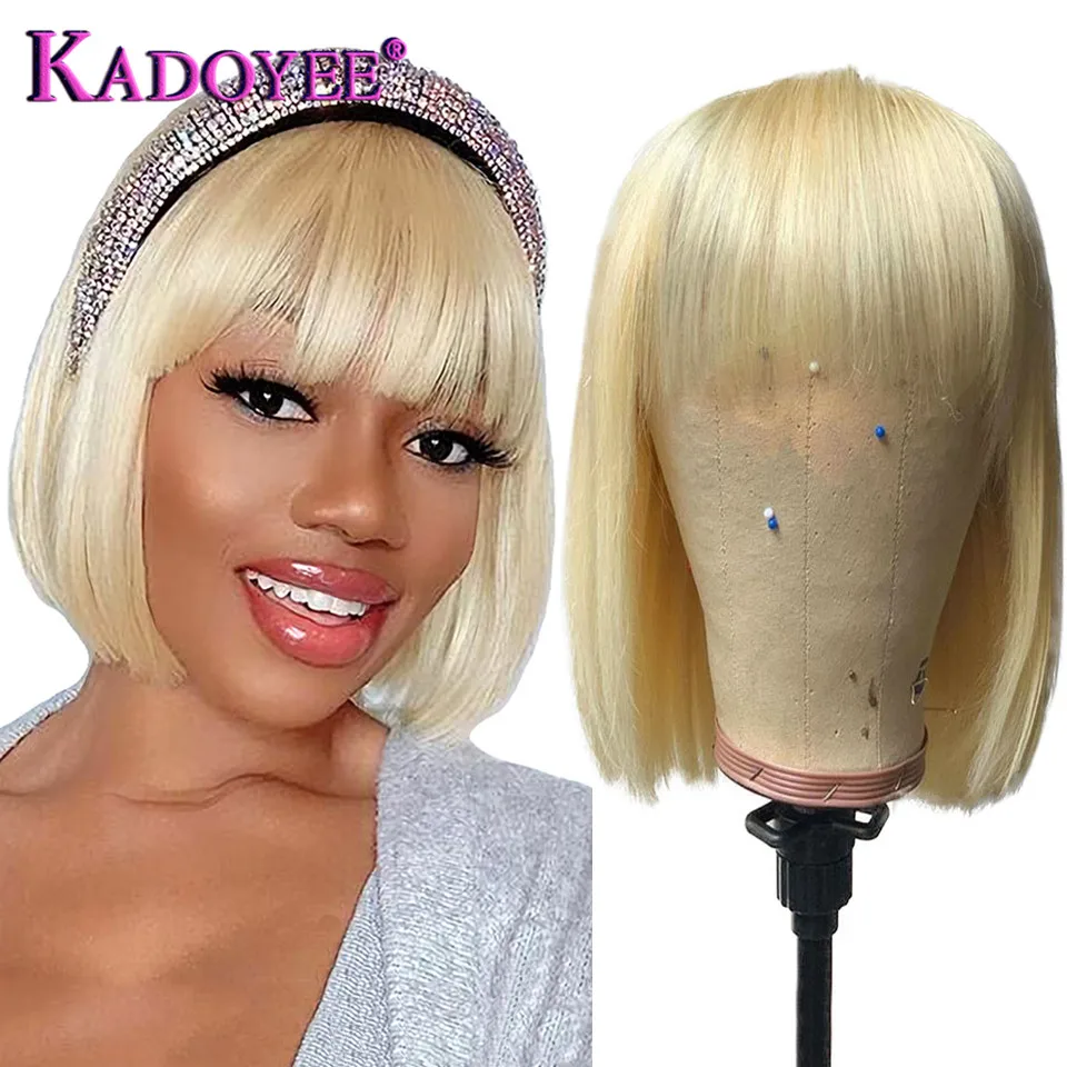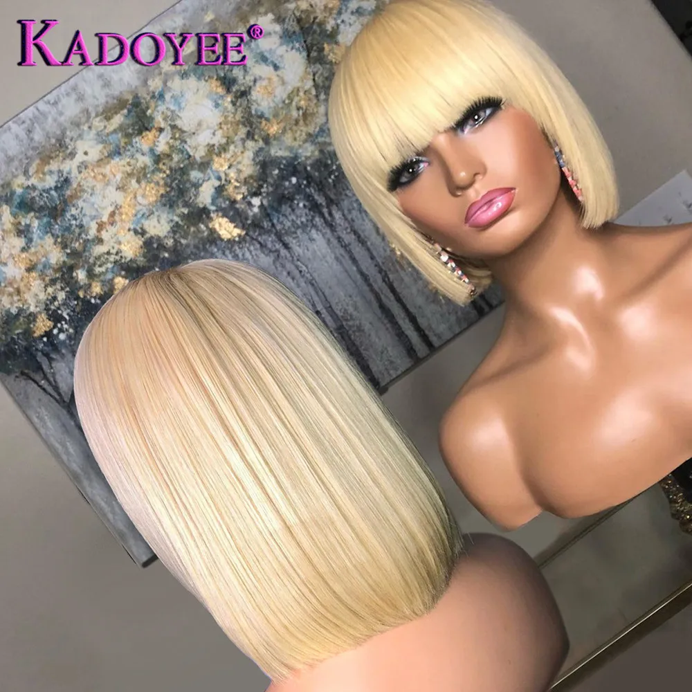 Парики короткие Боб, прямые парики из натуральных волос с челкой, парик блонд, бразильский, 613 цветов, без клея, полностью машинные парики для женщин, Remy