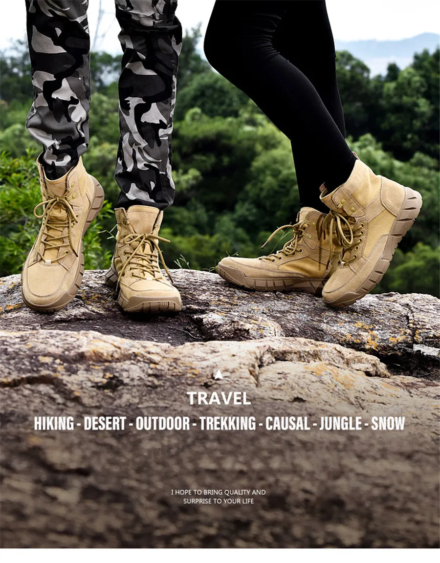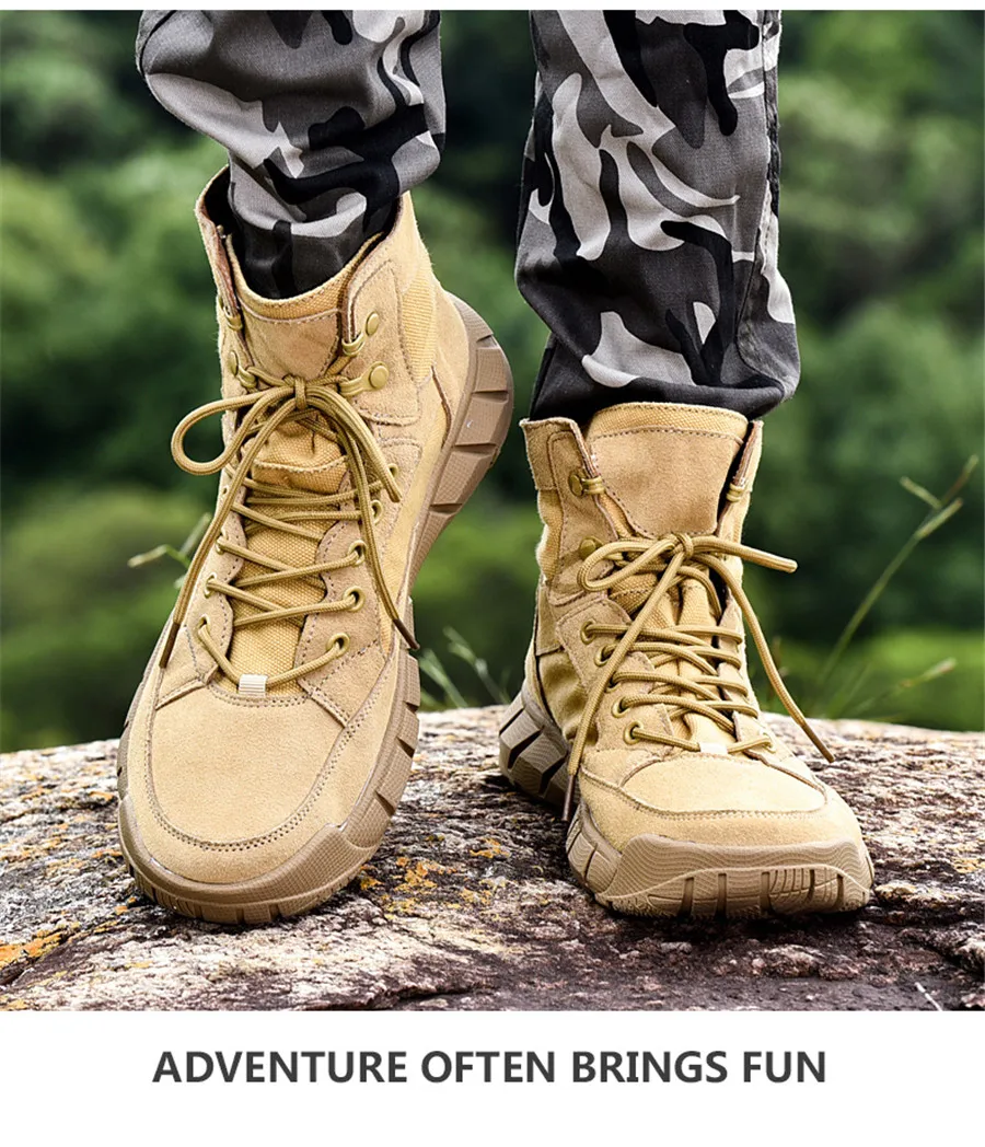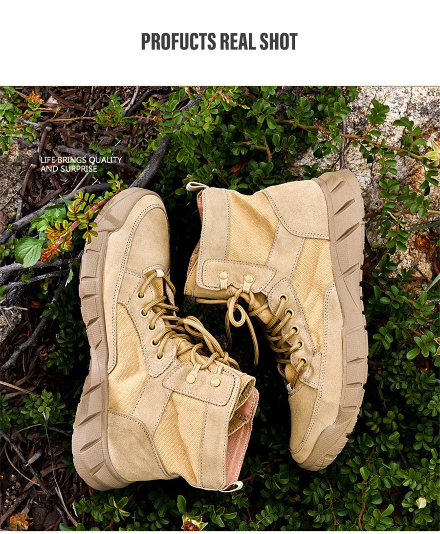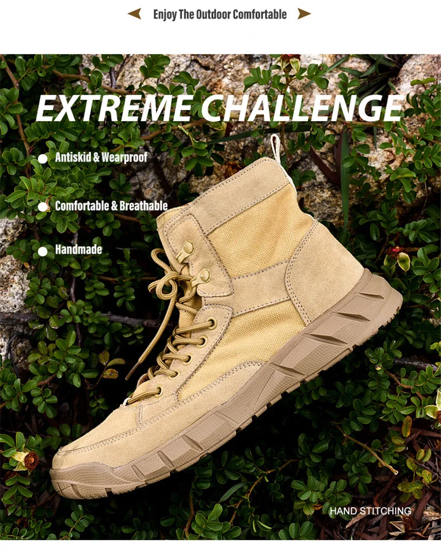 Сезон весна-лето; Треккинговые ботинки из парусины и замши; Цвет песочный; Военные тактические ботинки; Нескользящая женская обувь для пеших прогулок; Мужские ботинки с высоким берцем