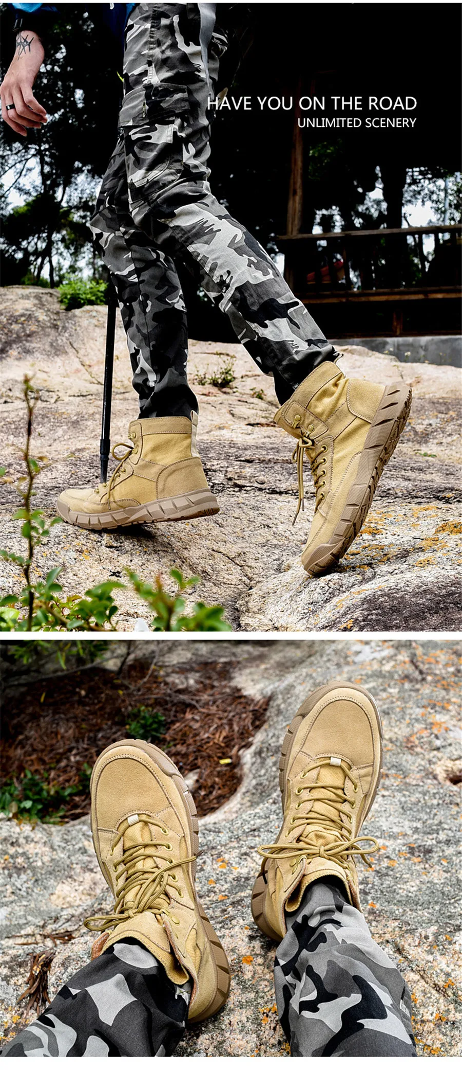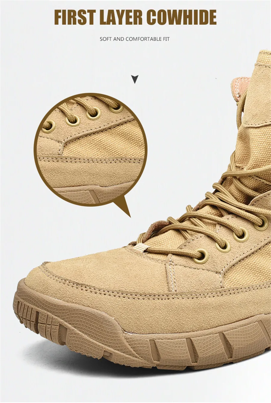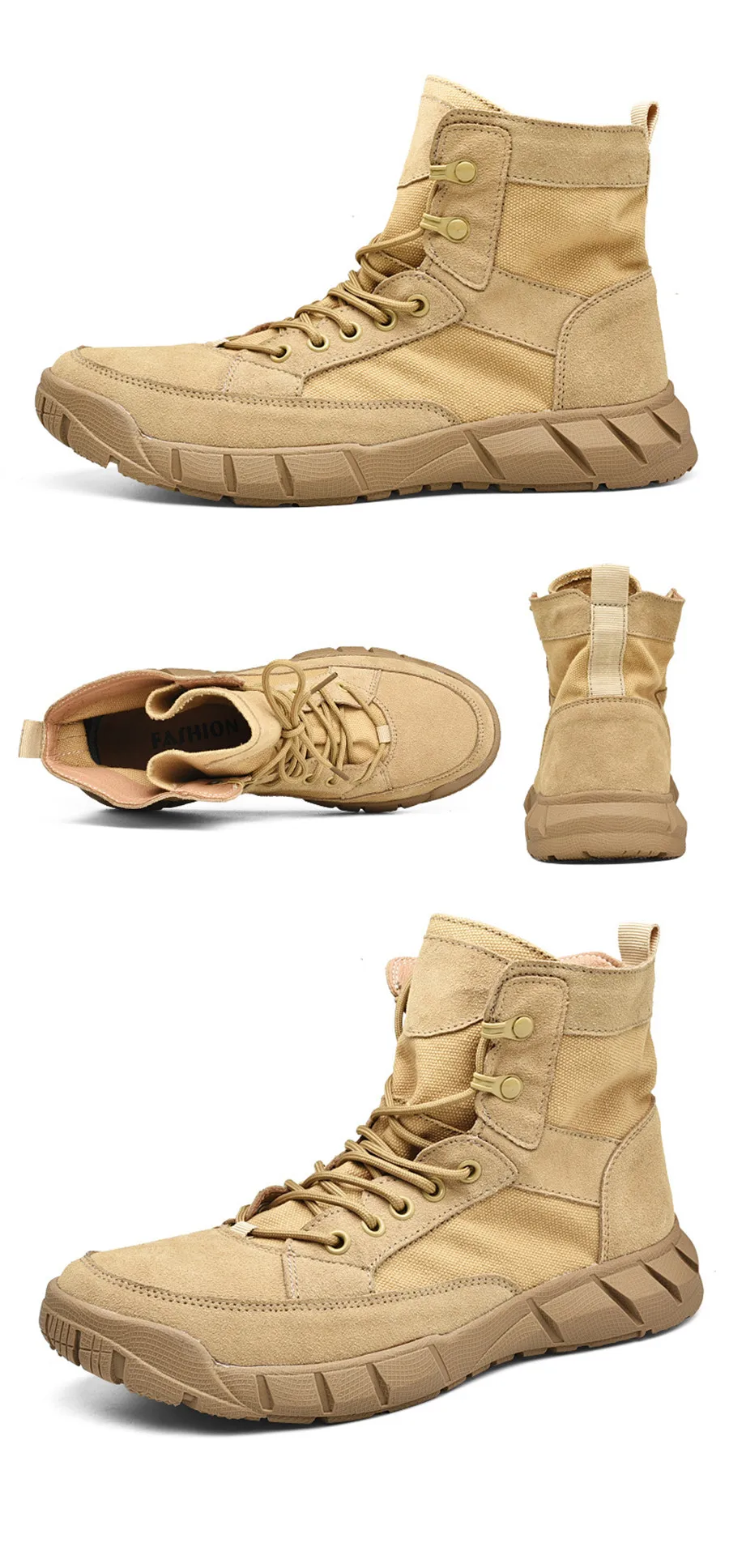 Сезон весна-лето; Треккинговые ботинки из парусины и замши; Цвет песочный; Военные тактические ботинки; Нескользящая женская обувь для пеших прогулок; Мужские ботинки с высоким берцем