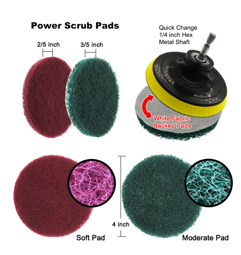 Набор щеток для сверления, щетка для скруббера, набор для чистки ванной комнаты с расширителем, многофункциональная Очистка для кухни 6-1 предмет 3 шт., головки brushe + 1 шт., 4 дюйма, красная и зеленая ткань для очистки + 1 шт., 4 дюйма, пластиковый диск M6 + 1 шт., 6 угловых стержней 12 комплектов в партии: 4 шт. чистящих головок (2 дюйма 3,5 дюйма, 4 дюйма, 5 дюймов) , 6 шт., губки, 1 шт. 15 см телескопическая штанга, 1 шт., размер: 4 дюйма липкие пластины с винтами, продаются в наборе