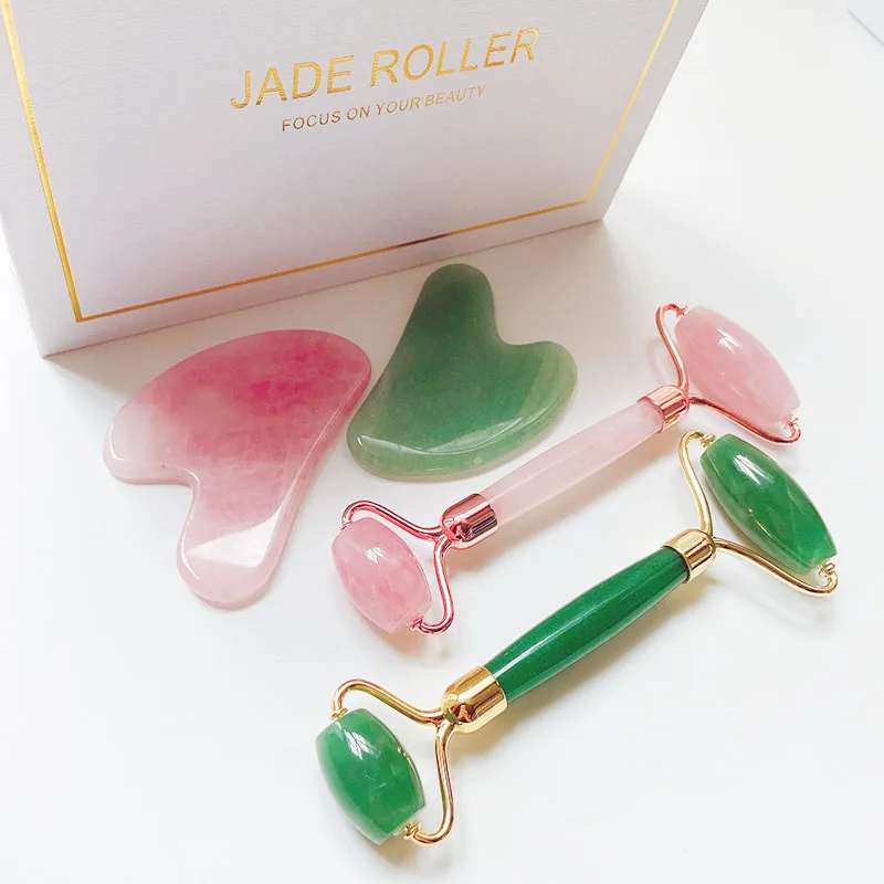 Портативный массажер для подтяжки глаз для лица, твердый роликовый лицевой нефрит для массажа, ролик из Натурального Розового Кварца, инструмент для ухода за глазами, подарочная коробка