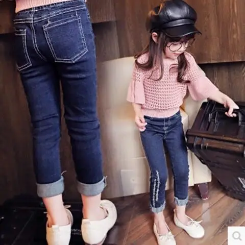 Штаны для девочек на весну и осень хлопковые повседневные однотонные брюки со средней талией на резиновой резинке с карманами джинсы для девочек