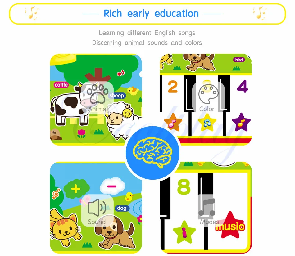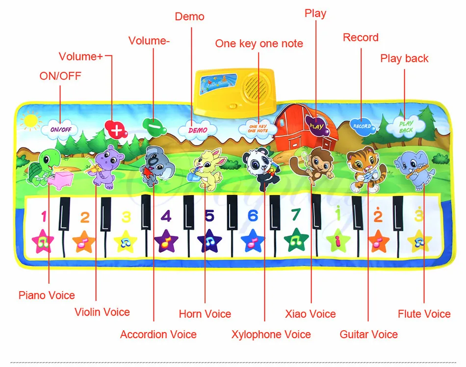 🎹[Больше выбора]: Есть четыре типа музыкальных ковриков на ваш выбор. Они имеют разные размеры и функции. Вы можете выбрать в соответствии со своими увлечениями 🎹[Тема животных]: тема животных настолько милая, что вам очень понравится ребенок. Каждый коврик имеет 6 или 8 видов звуков животных 🎹[Много забавных режимов]: вы можете изменить тон с помощью звуков животных или с вкраплениями звонков животных в песнях. 🎹[Безопасный и удобный в транспортировке]: коврики изготовлены из нетоксичного материала, безопасного для детей для прикосновения или использования ног для пинания. Складная конструкция легко очистить и взять на улицу. 🎹[Хороший подарок детям]: дети могут вместе петь и танцевать, чтобы улучшить их восприятие и познавательные способности. Отличный подарок на день рождения и праздники для мальчиков и девочек.