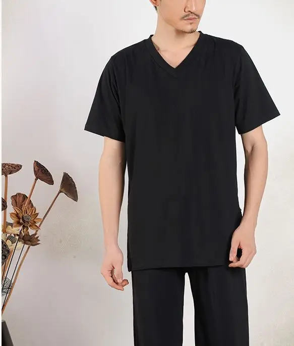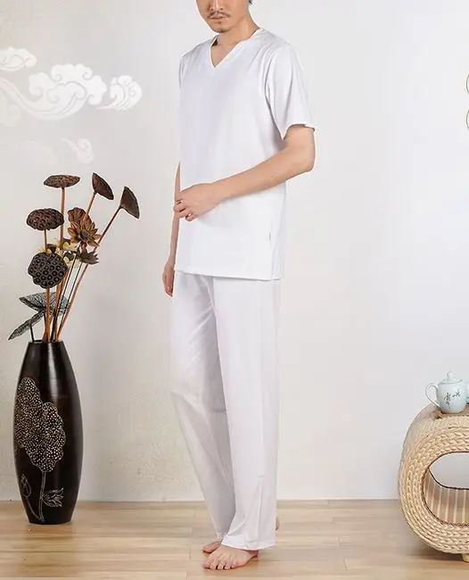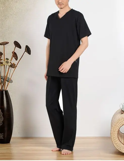Material: 95% cotton and 5% spandex Packge including: Tops+pants High quality fabric, breathable, comfortable, suitable for Summer and Spring and Autumn wear.