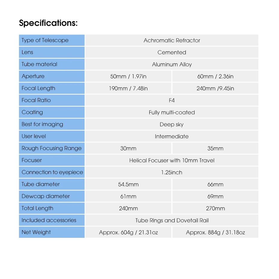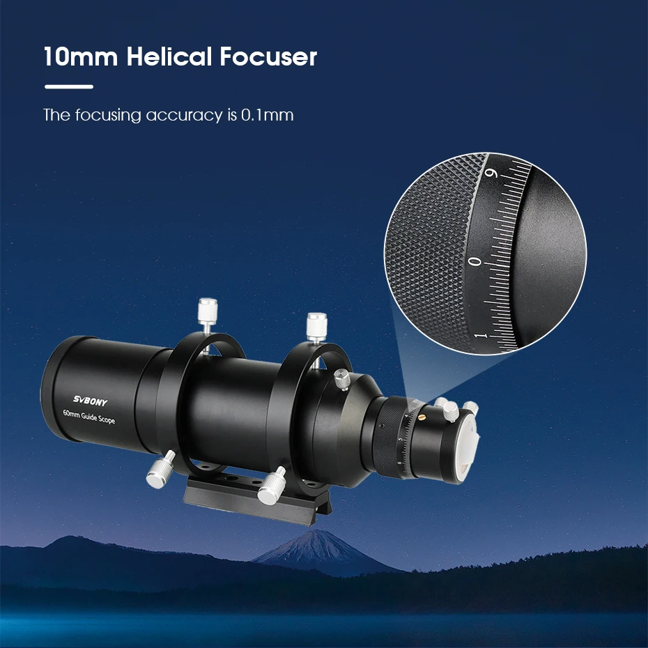 Универсальный 60 мм направляющая область со встроенным helical focuser для точной фокусировке потенциал руководство звезды. Помочь вам захватить высшего качества astrophotos. Кроме того, он является идеальным дополнением к любому астрофотографы коллекция туристического снаряжения.